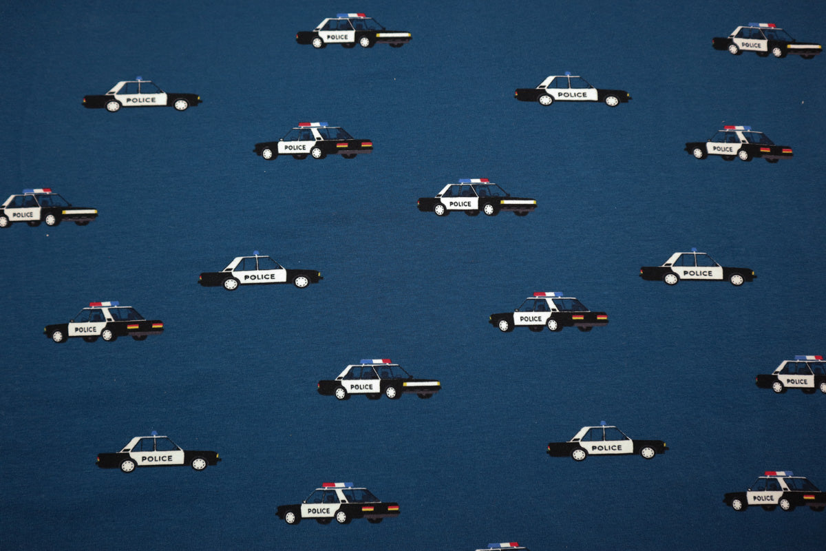 Cooles Muster mit amerikanischen Polizeiautos auf dunkelblauem Hintergrund.
