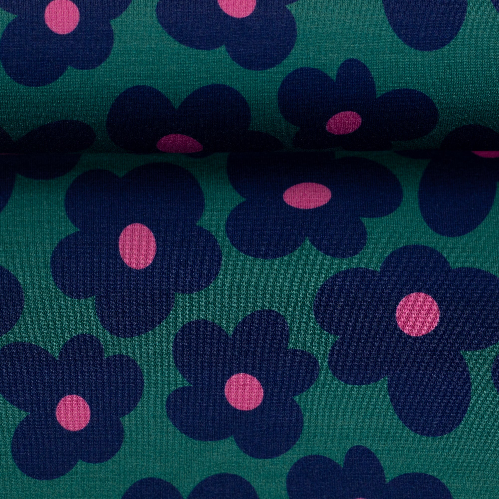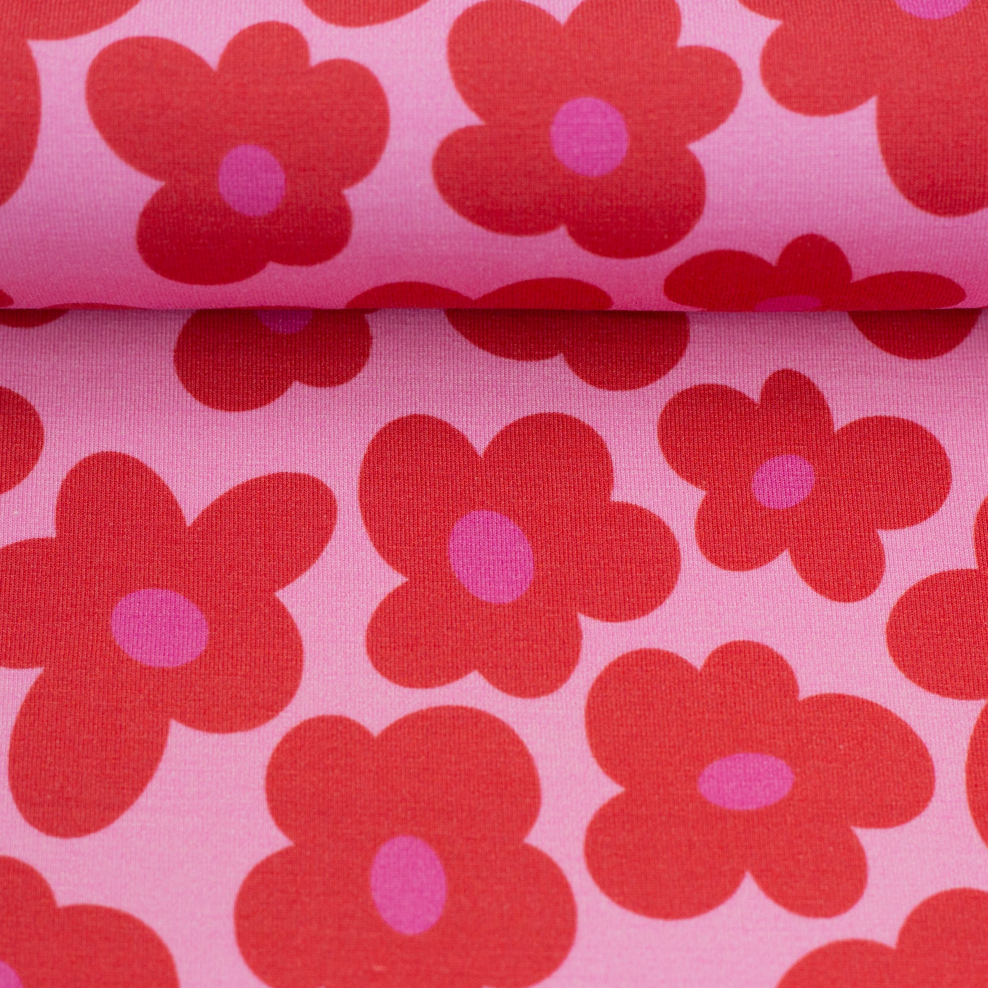 Freut euch auf Happy Flowers Viskose Jersey in knalligen Farben.