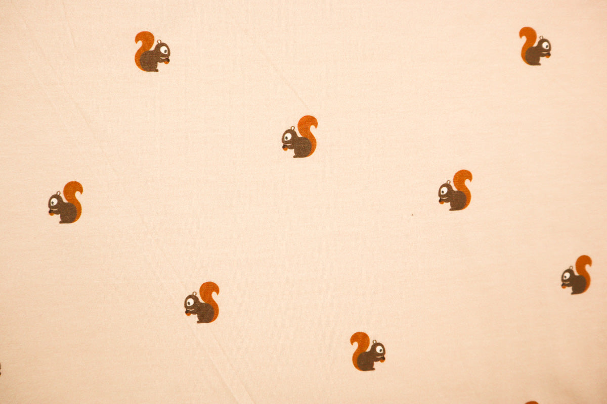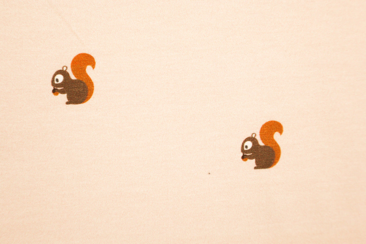 Schönes, herbstliches Muster. Kleine ca 2,3 cm hohe Eichhörnchen auf nude farbenem Hintergrund.