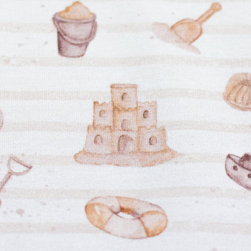 Die Sandburg hat eine Höhe von ca 3,5 cm.