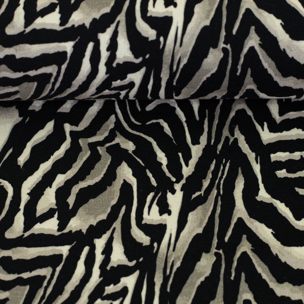 Ein Baumwolljersey in fantastischer Qualität, der mit seinen ausdrucksstarken Animal-Prints und dem floralen Design direkt ins Auge fällt.