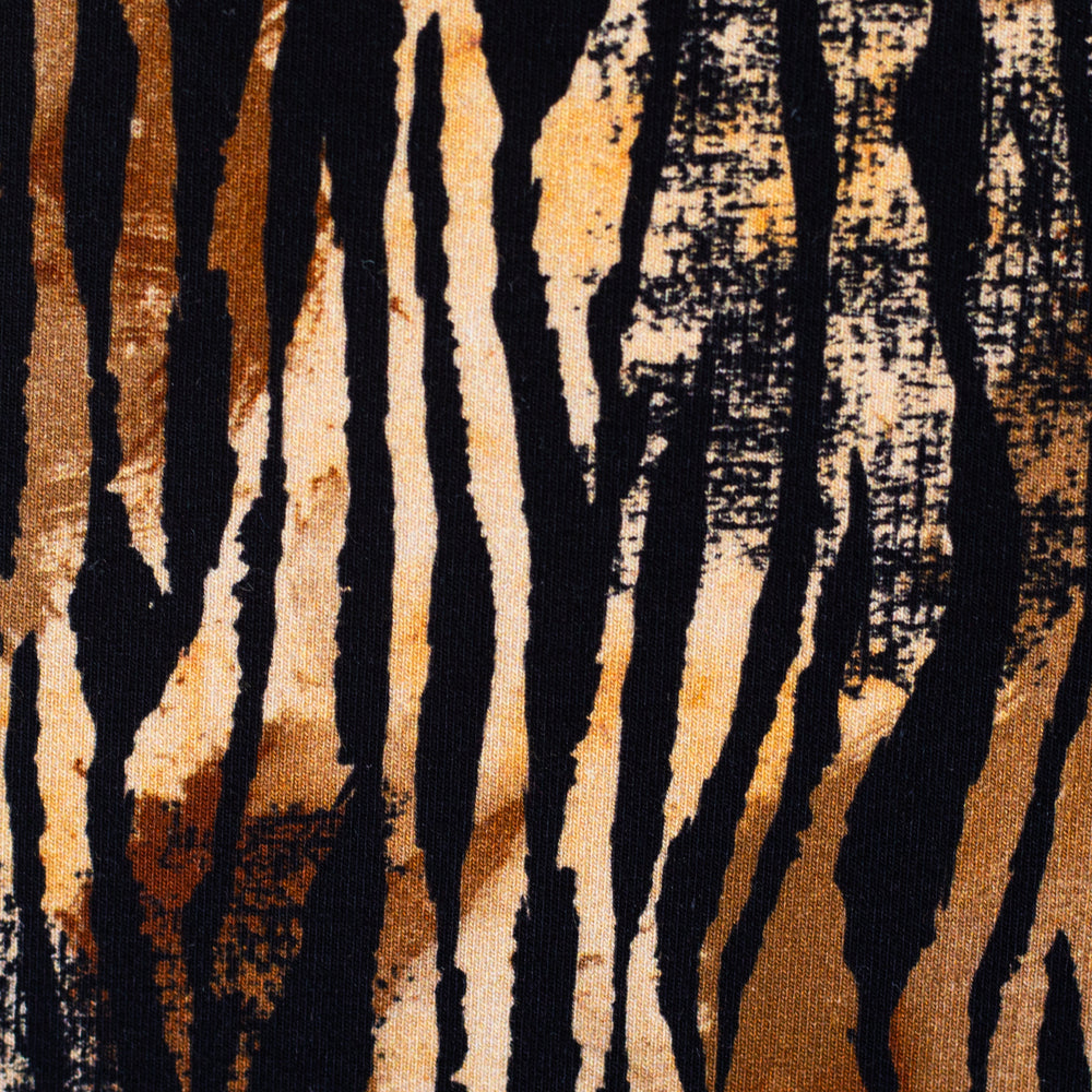 Tigerprint in warmen Brauntönen – lebendig, kraftvoll und doch edel. Ein echtes Statement-Muster, das sofort Mode-Feeling verbreitet.