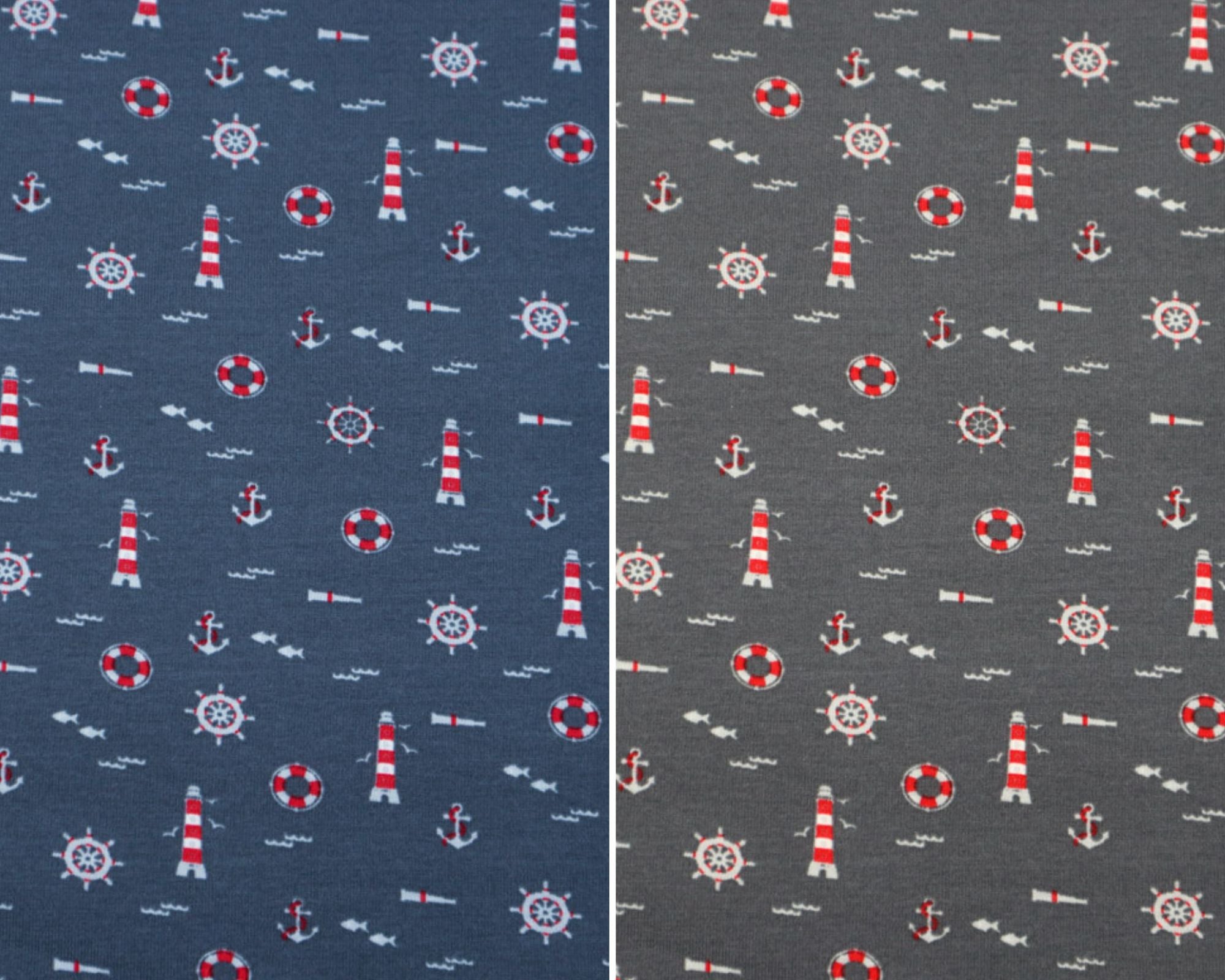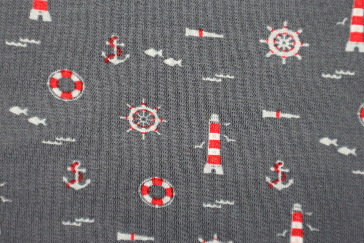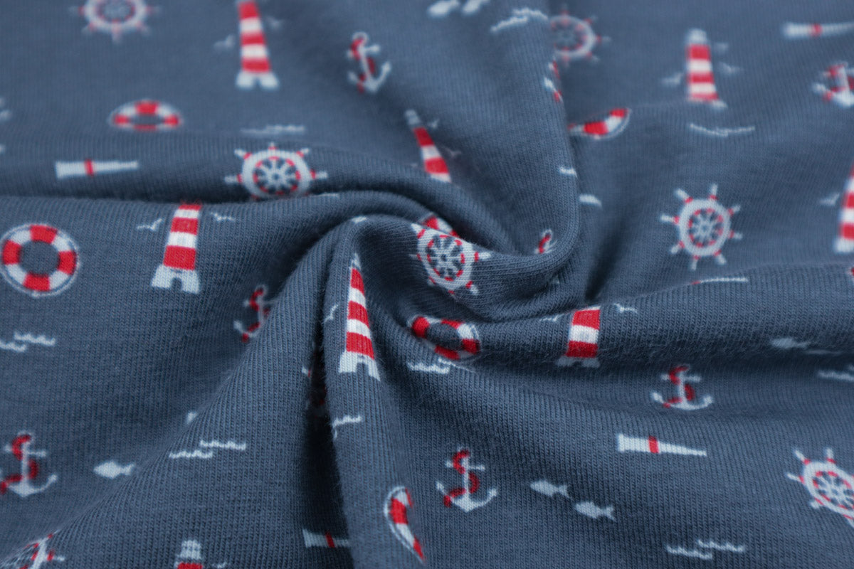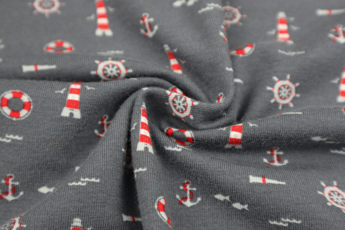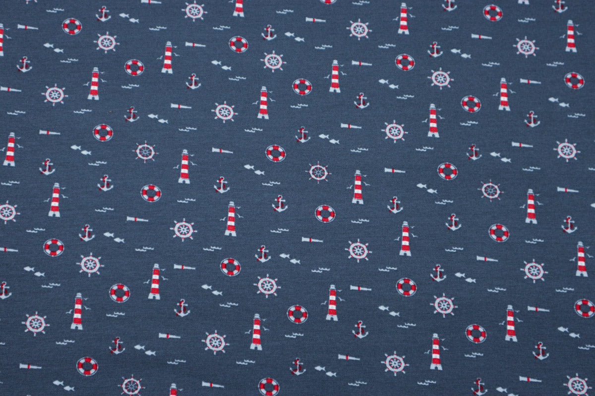 Super schöner Baumwolljersey mit Leuchttürmen und anderen maritimen Symbolen.