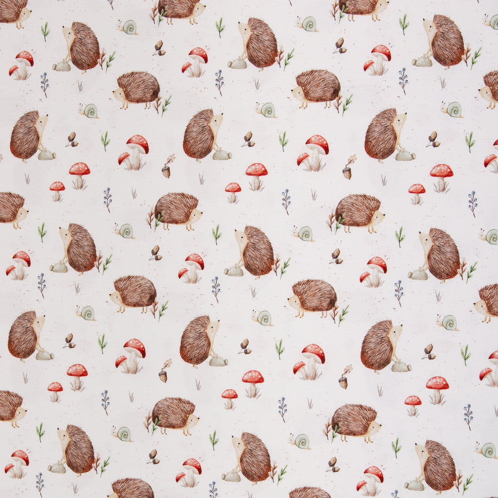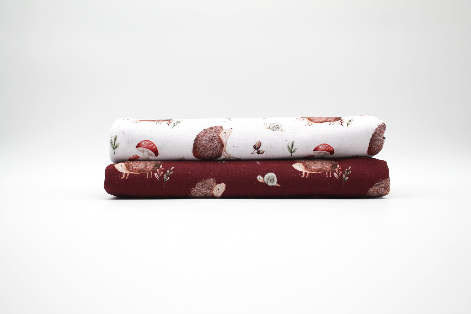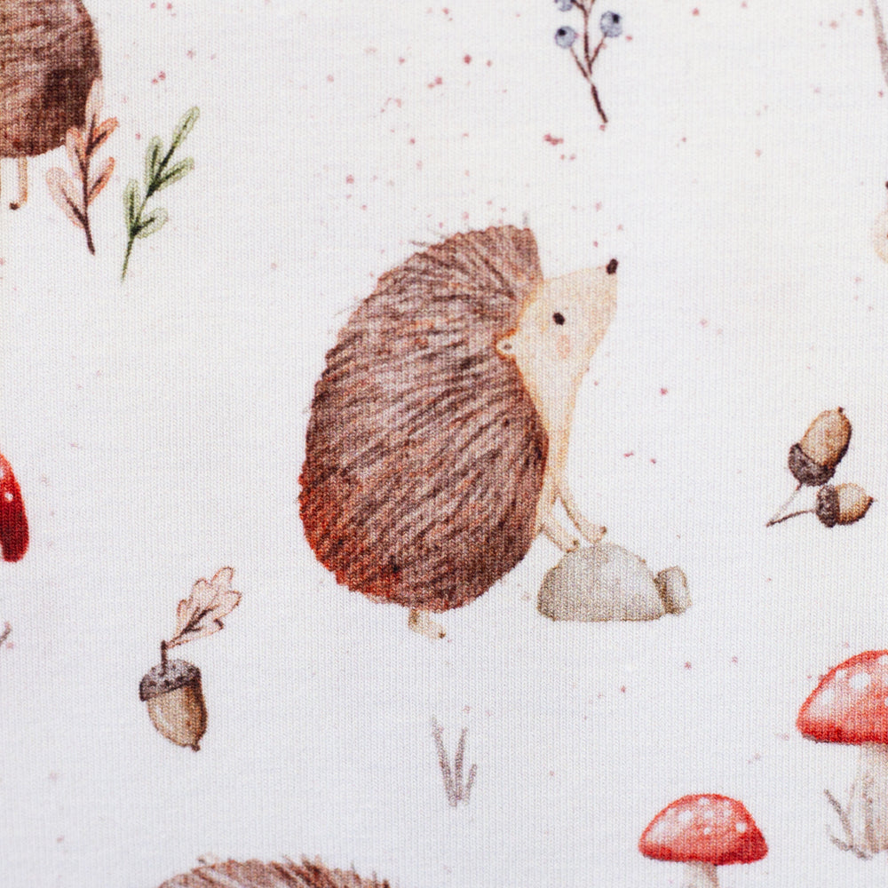 Niedliche Eichhörnchen, Wildschweine, Waschbären, Polarfüchse und der verspielte Igel bringen Geschichten aus dem Wald auf die Stoffe.