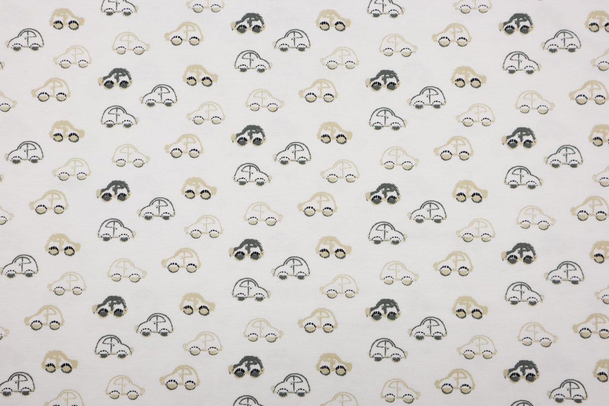 Super süßer Baumwolljersey für Kinder mit kleinen Autos auf weißem Grund.