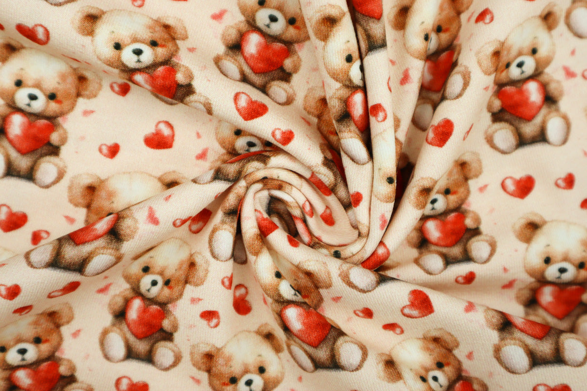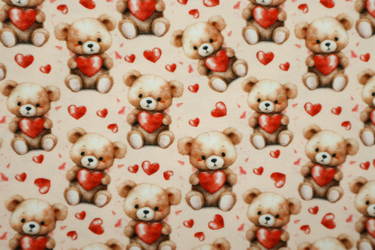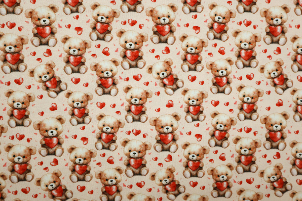 Niedliches Muster mit kleinen Bären und vielen roten Herzchen.