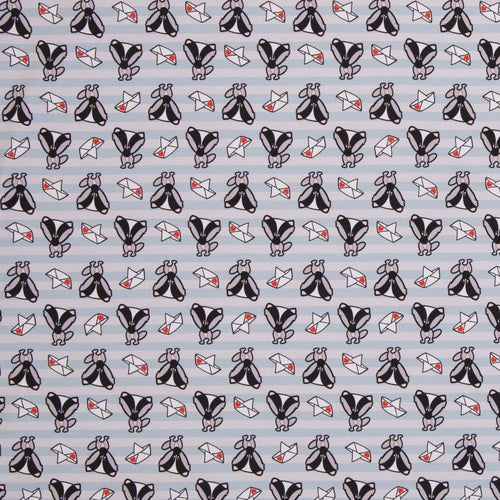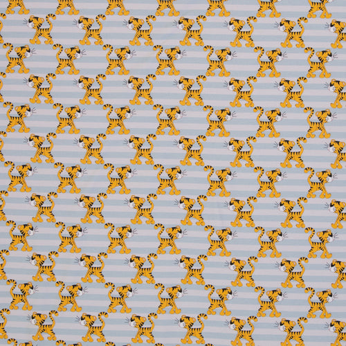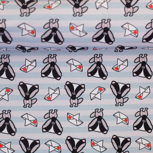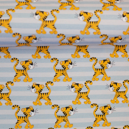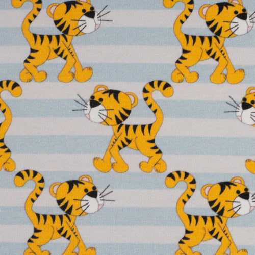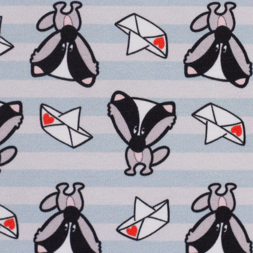 Mister Fuchs und seine Freunde kommen auch auf gestreiften Stoffen. Der Fuchs trägt ein süßes Loveboat-Hütchen. Das Loveboat darf auch bei Mister Dachs nicht fehlen. Auch Tiger Karl ist wieder mit dabei – wie seine Kumpels tigert er auf Streifen in zartem Hellblau.