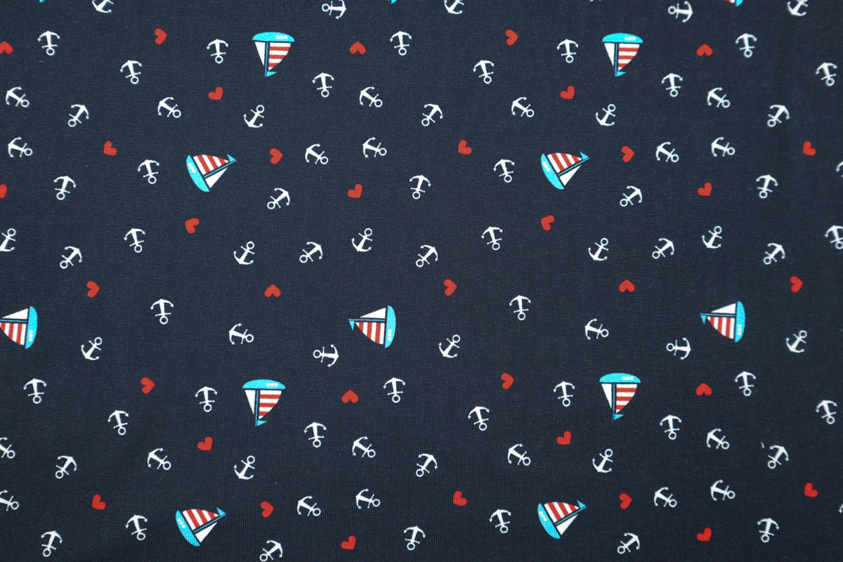 Schönes maritimes Muster mir kleinen Schiffchen, Herzen und Ankern.
