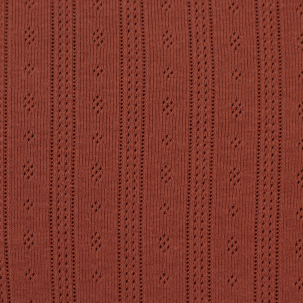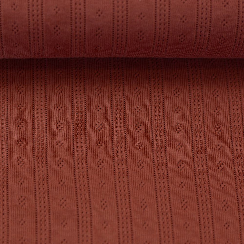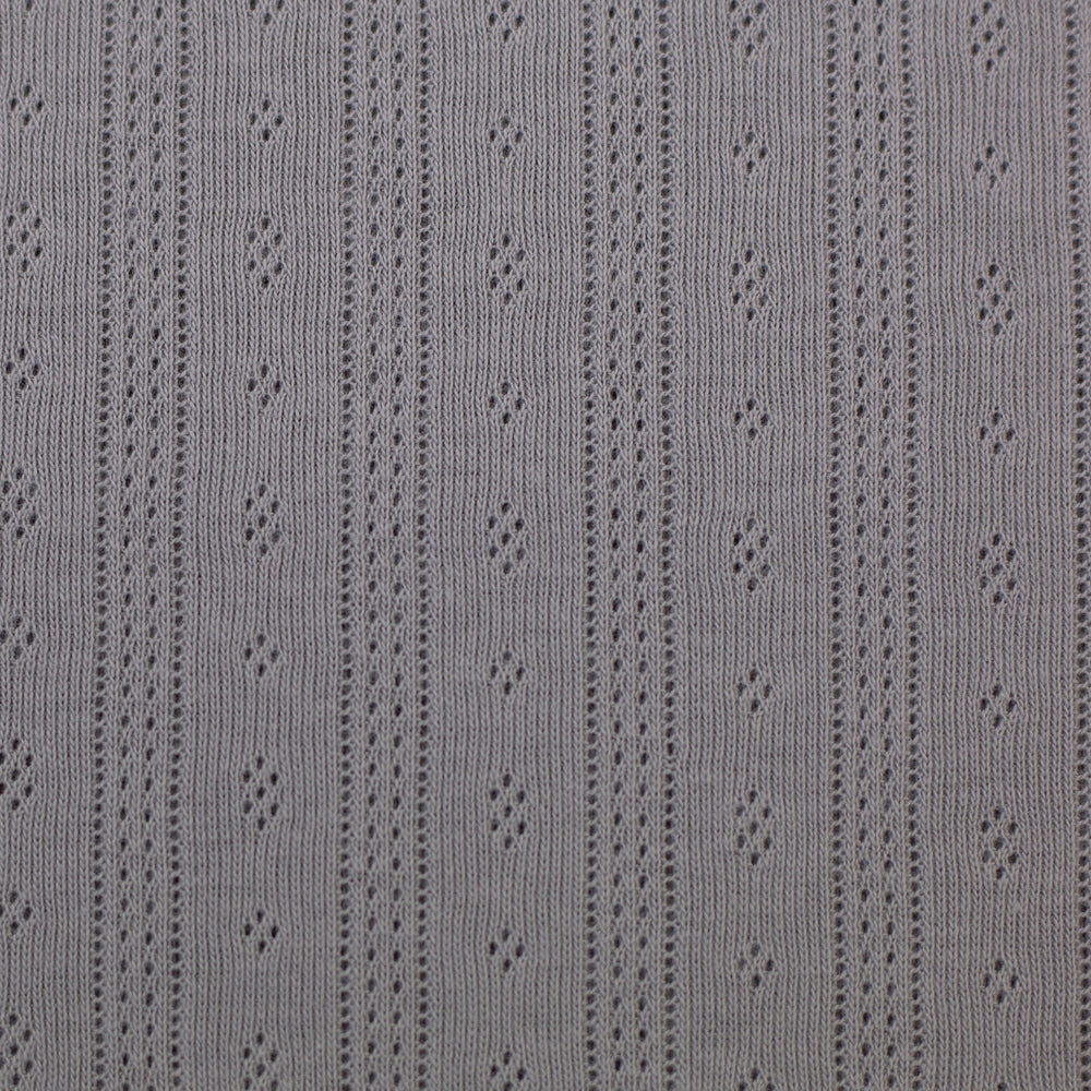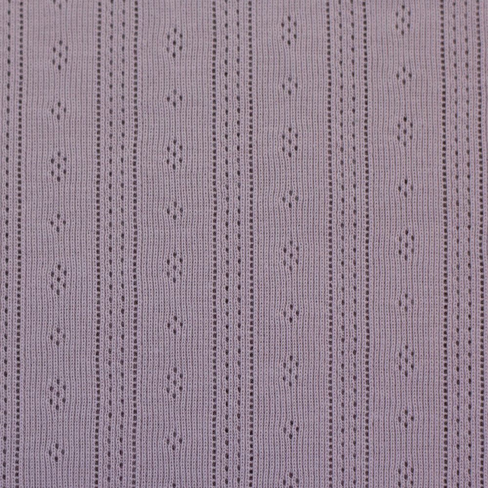 Der weiche Jersey mit Ajourmuster hat ein bezauberndes Muster mit kleinen Rauten und durchbrochenen Längsstreifen. Die Durchbrechungen sind so fein, dass der Stoff trotzdem blickdicht ist, man also nicht durch die kleinen Löcher hindurchsehen kann. Ideal für Oberteile, Kleider, Rollkragenshirts, Baby- und Kindermode, Mützen, Tücher und leichte Decken! Der schöne Pointille-Jersey trägt sich schön luftig und leicht und schmiegt sich wunderbar an.