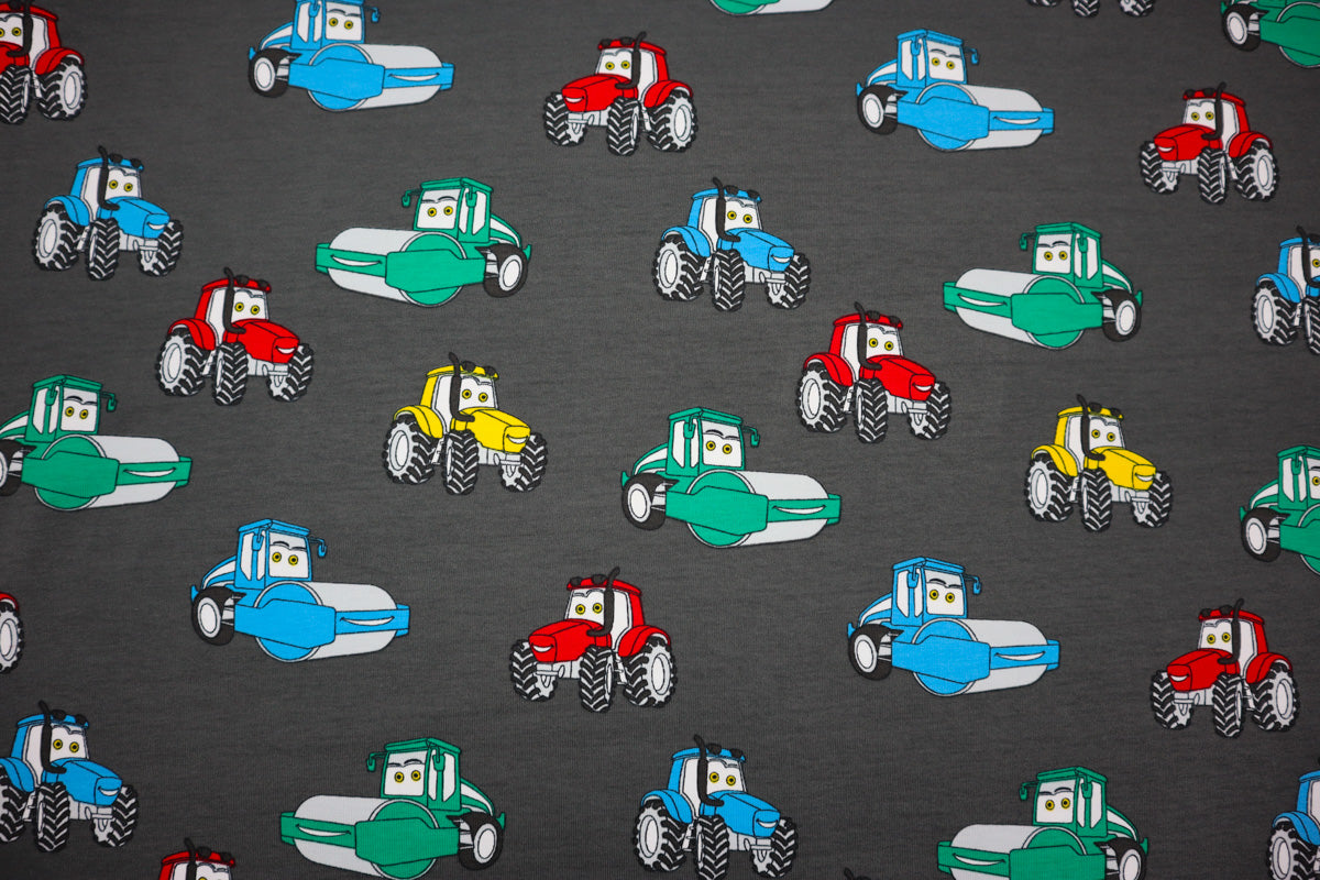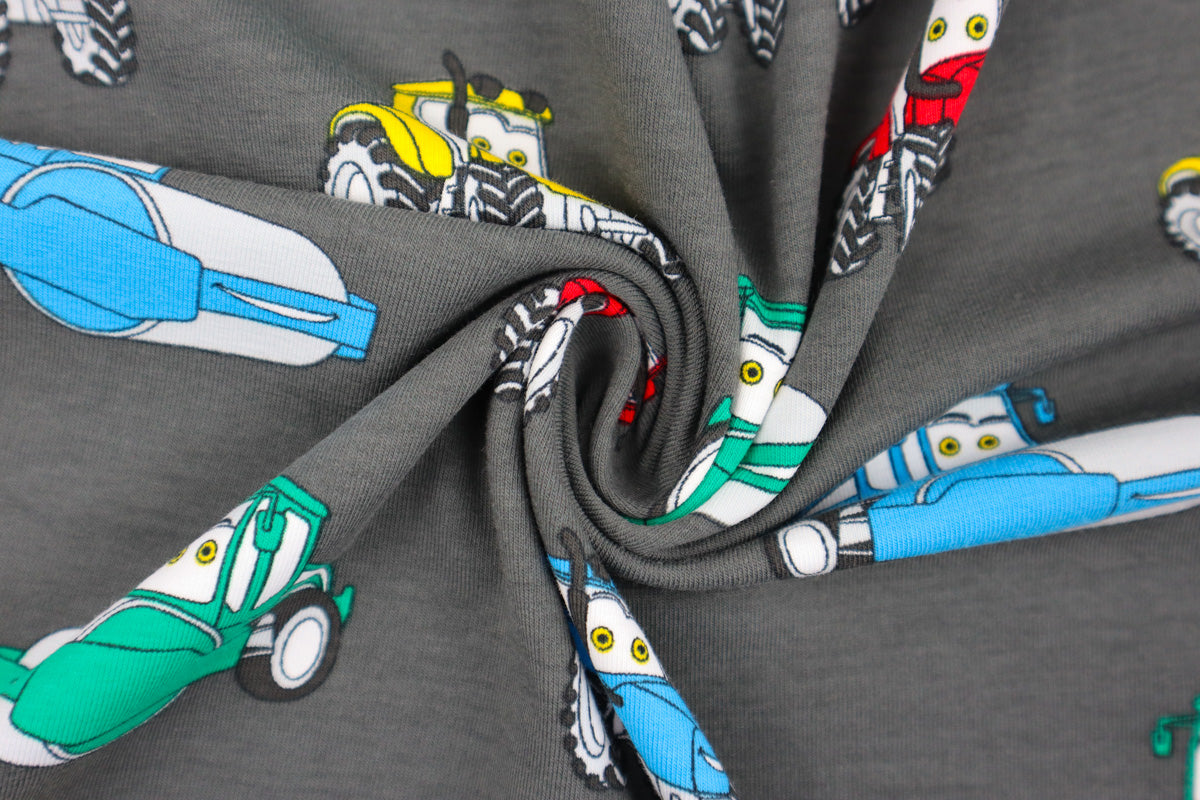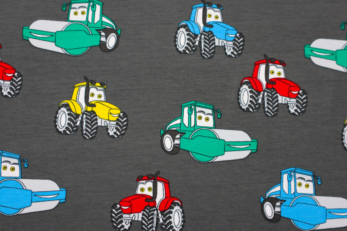 Cooler Baumwolljersey mit bunten Baustellenfahrzeugen.