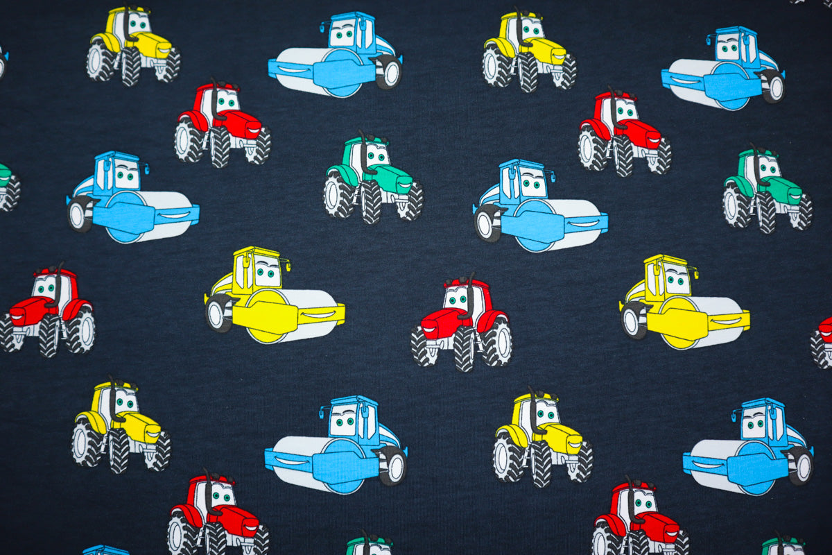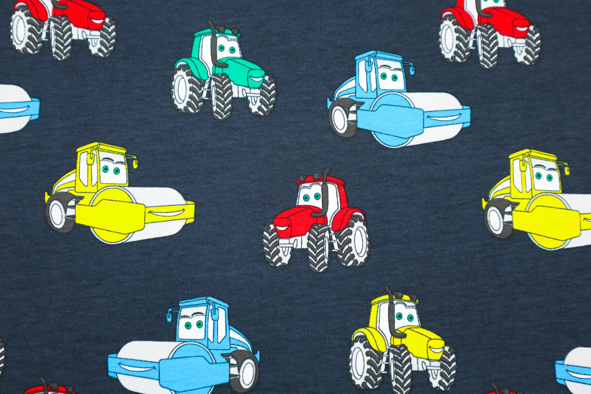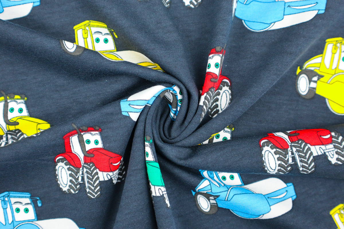 Cooler Baumwolljersey mit bunten Baustellenfahrzeugen.