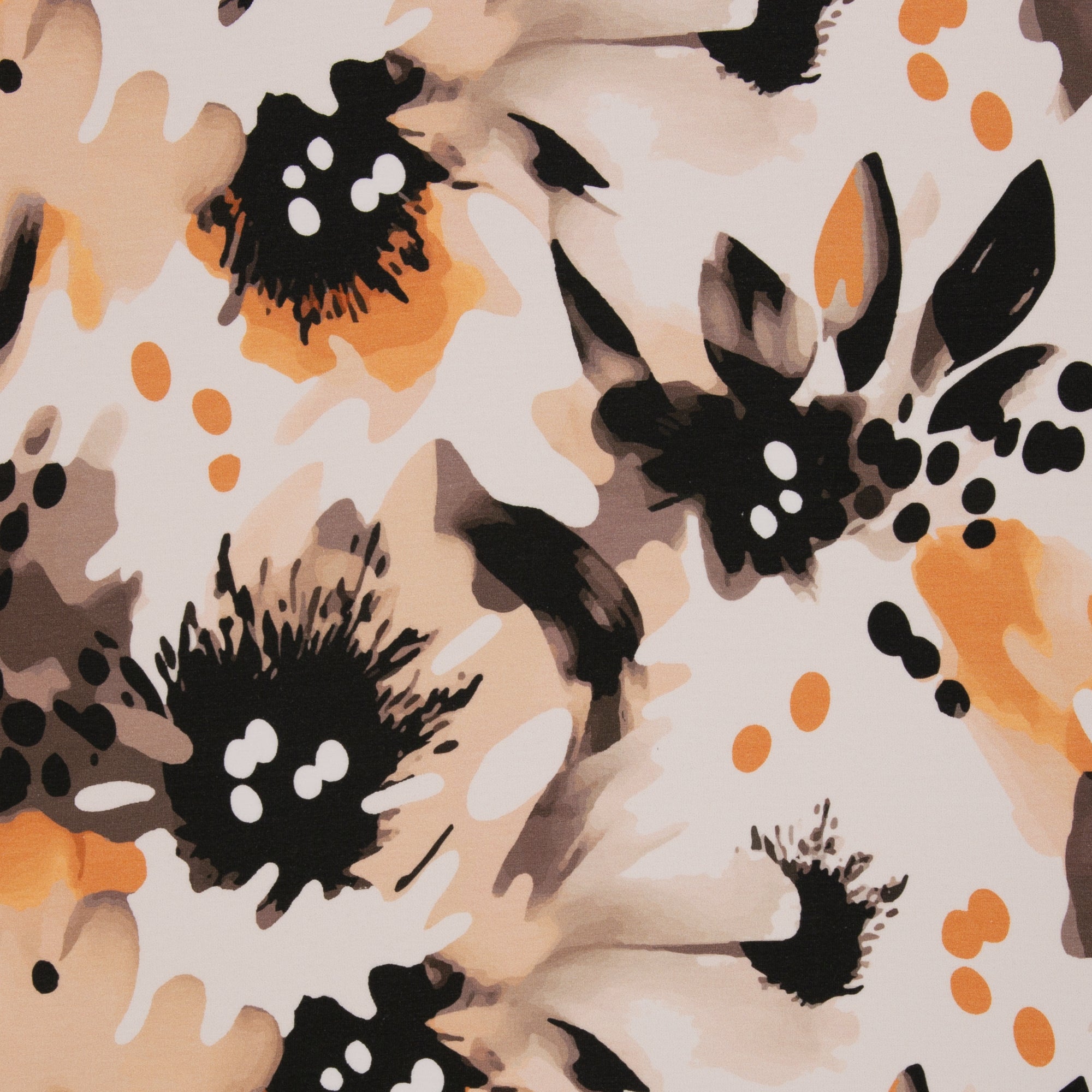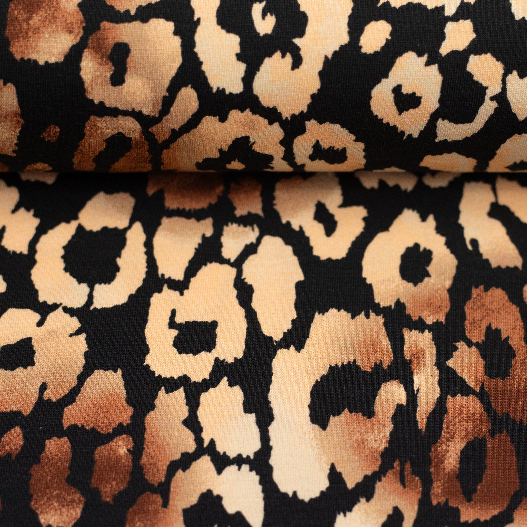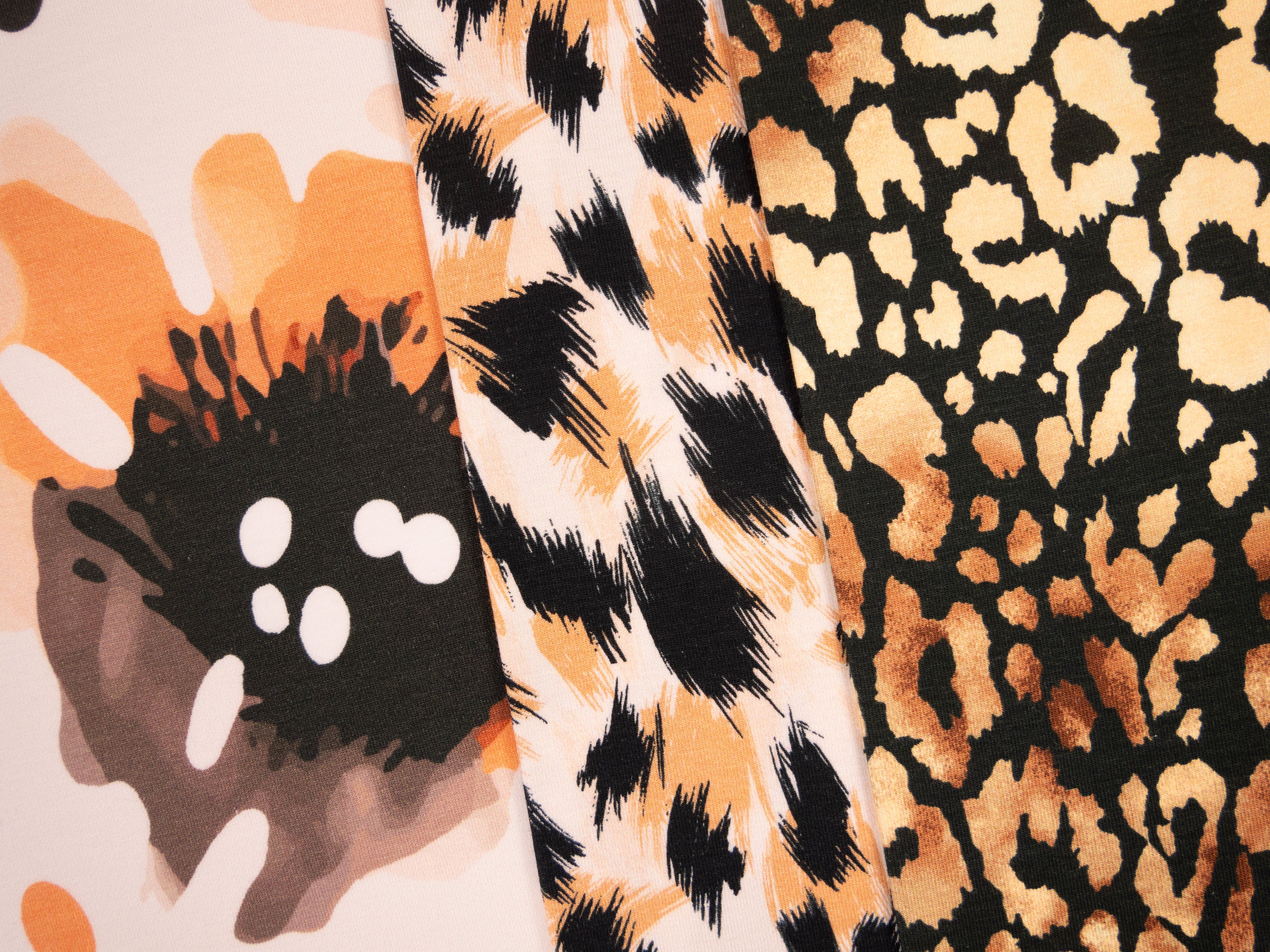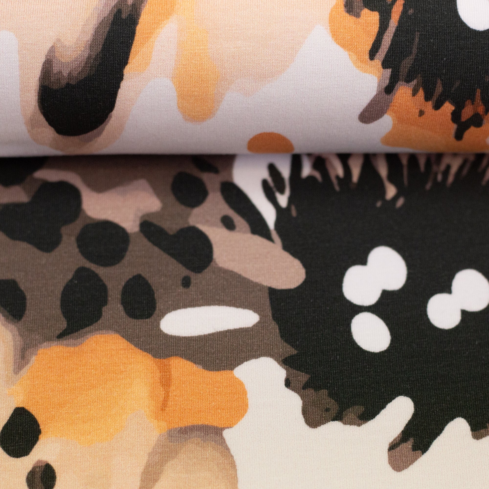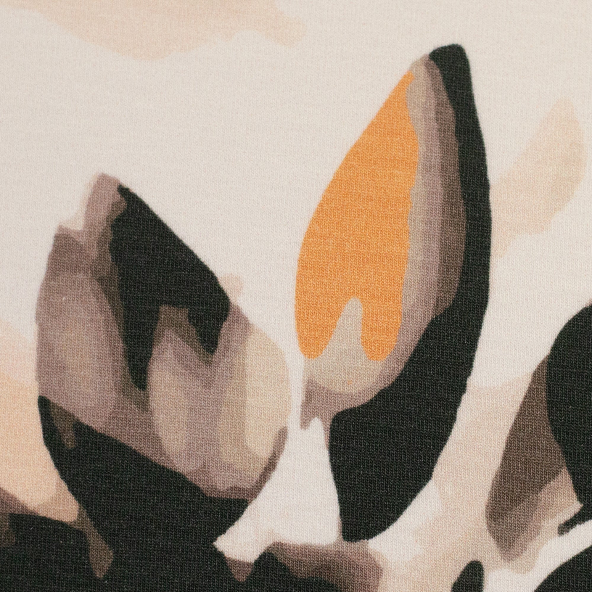 Olivia ist ein Baumwolljersey mit zurückhaltender, erwachsener Designsprache. Erdige Farben, dunkle Blautöne und sanfte Kontraste zeigen, dass Sommerstoffe nicht immer laut sein müssen. Neben einem ausdrucksstarken Leo in Apricot und Schwarz finden sich abstrakte florale Motive, die erst auf den zweiten Blick ihre Blüten erkennen lassen.
