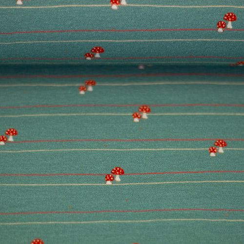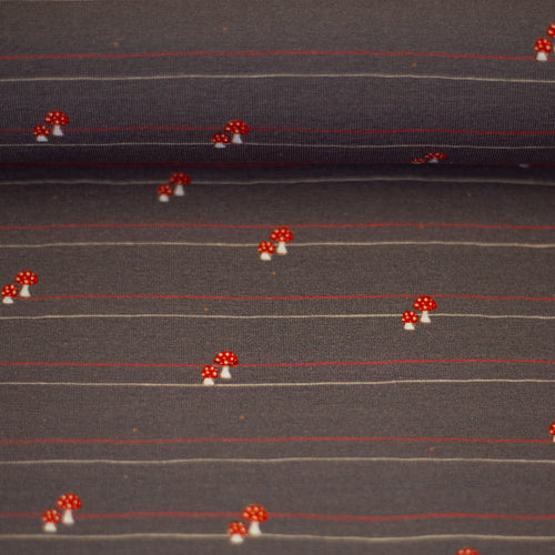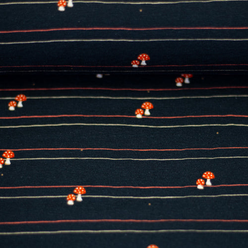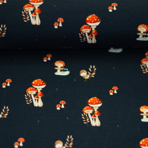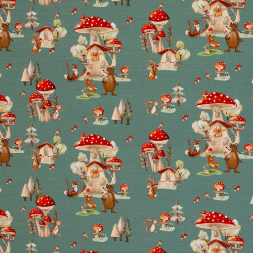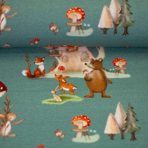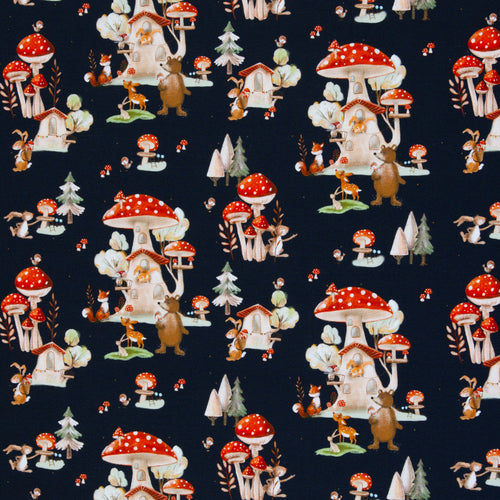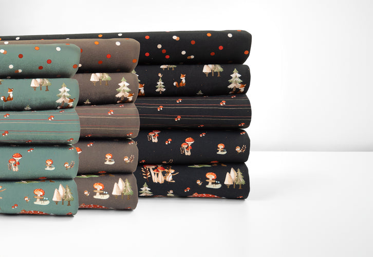 Fünf liebevolle Designs in drei Farben: Herzstück der Kollektion ist das Pilzhaus, aus dem die Waldtiere hinausschauen. Bär, Fuchs, Häschen, Rehe, Vögelchen regen die Fantasie an. Dazu passen die Designs mit dem Fuchs im Wald, die kleineren Pilze, die feinen Streifen mit Mini-Pilzen und das Konfetti-Design, das man wunderbar auch für Erwachsene zu Shirts und Kleidern vernähen kann. Alles ist so schön kombinierbar, aber auch alleine wunderschön! Die trageangenehmen Jerseys sind natürlich ideal für Kinderbekleidung wie Shirts, Kleidchen, Hosen, Mützen und mehr – aber auch als Innenfutter für Walkjacken und Overalls.