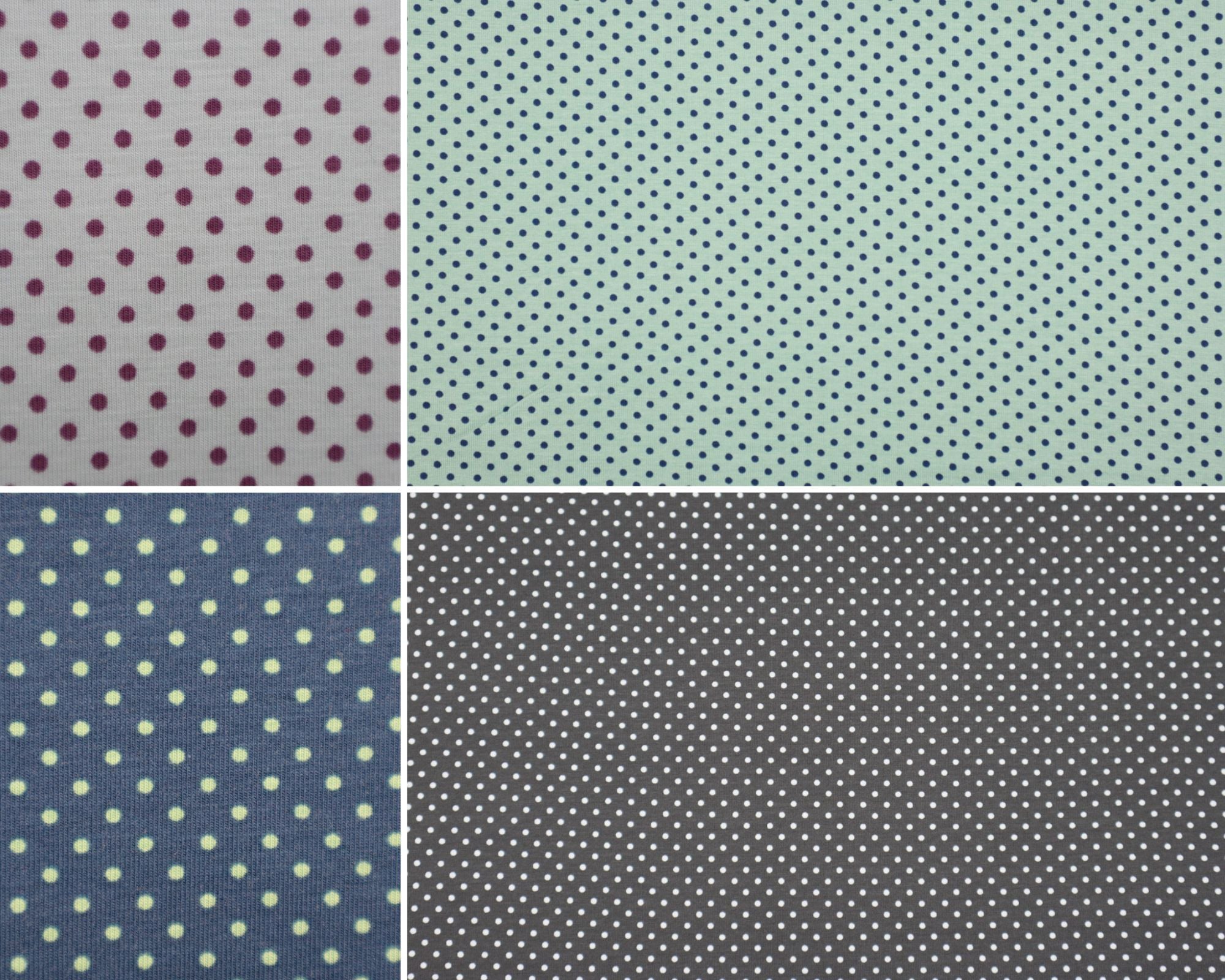 Super schöne, farbenfrohe Baumwolljerseys mit kleinen Punkten.
