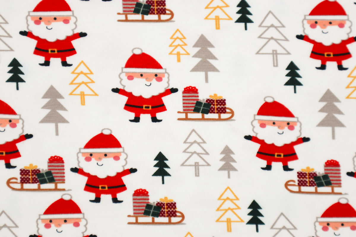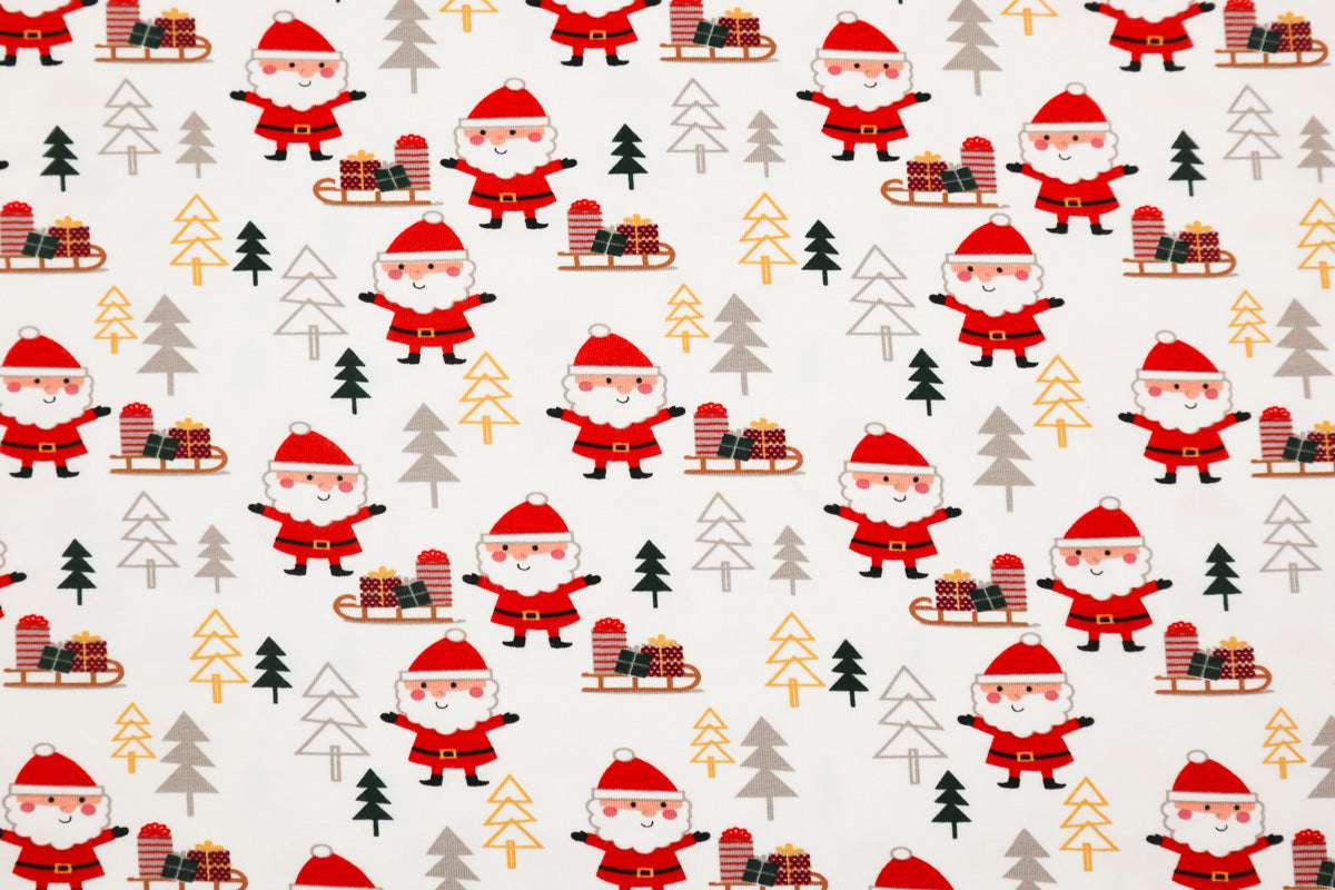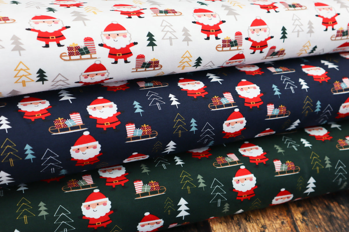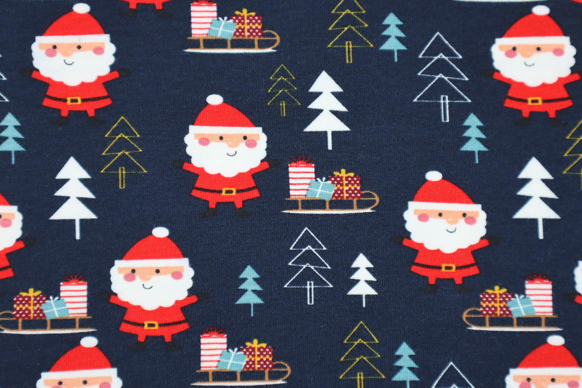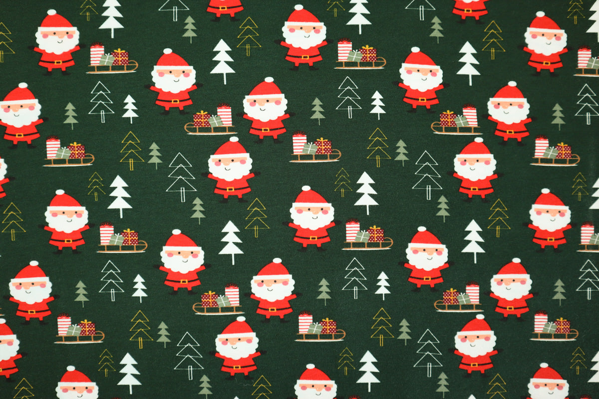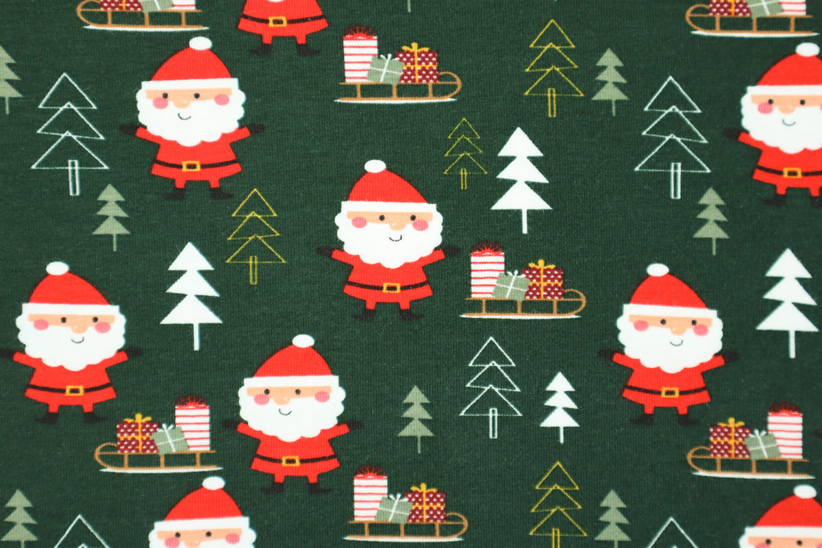 Tolles weihnachtliches Muster mit Weihnachtsmännern und ihrem Geschenkeschlitten.