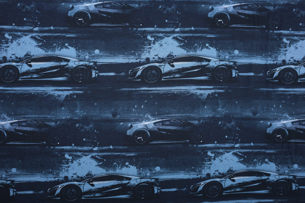 Richtig cooles Muster mit schnellem Sportwagen auf nachtblauem Hintergrund.