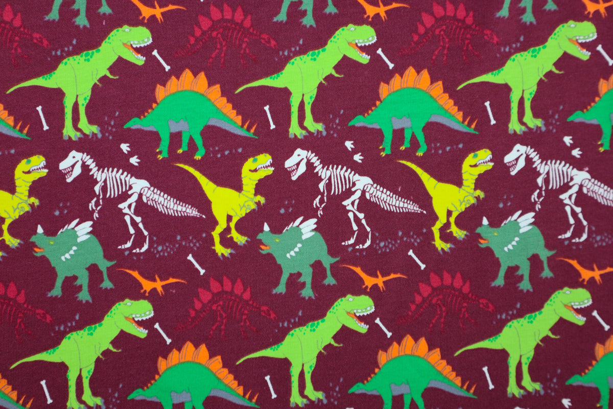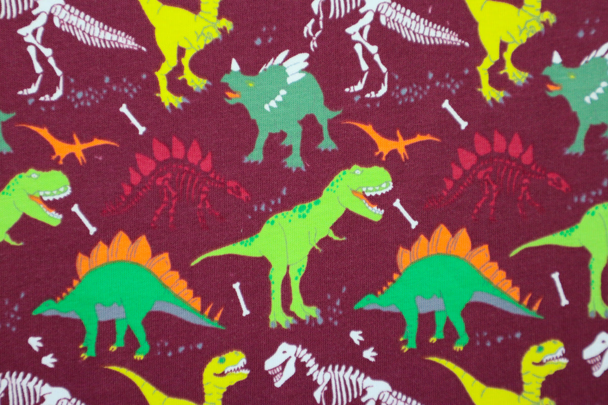 Cooler Baumwolljersey mit bunten Dinos und Dino Skeletten.