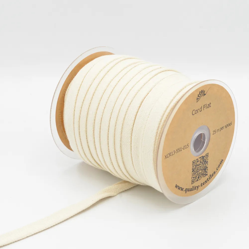 Flache Kordel aus 100% Baumwolle mit einer Breite von 20mm in off-white.