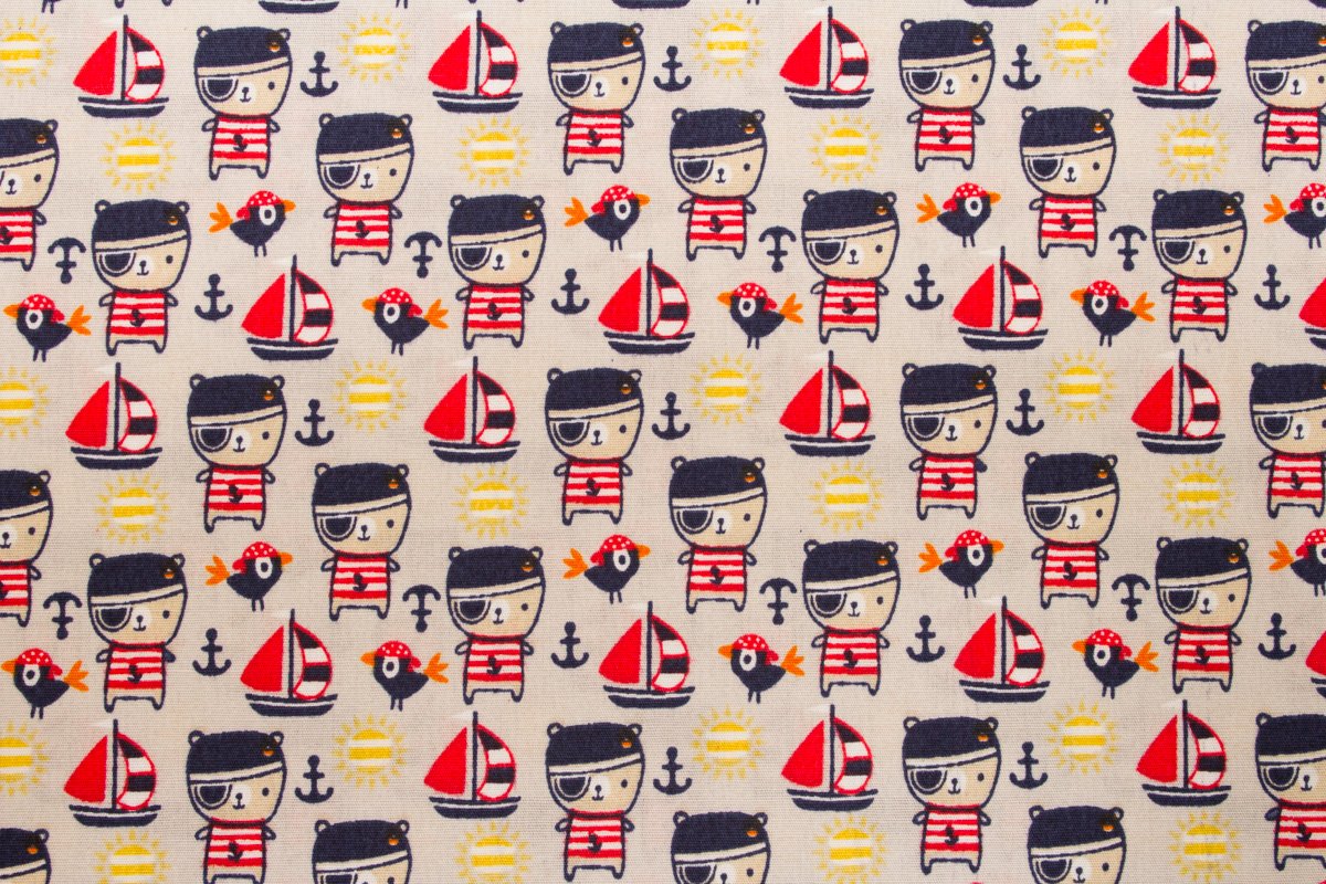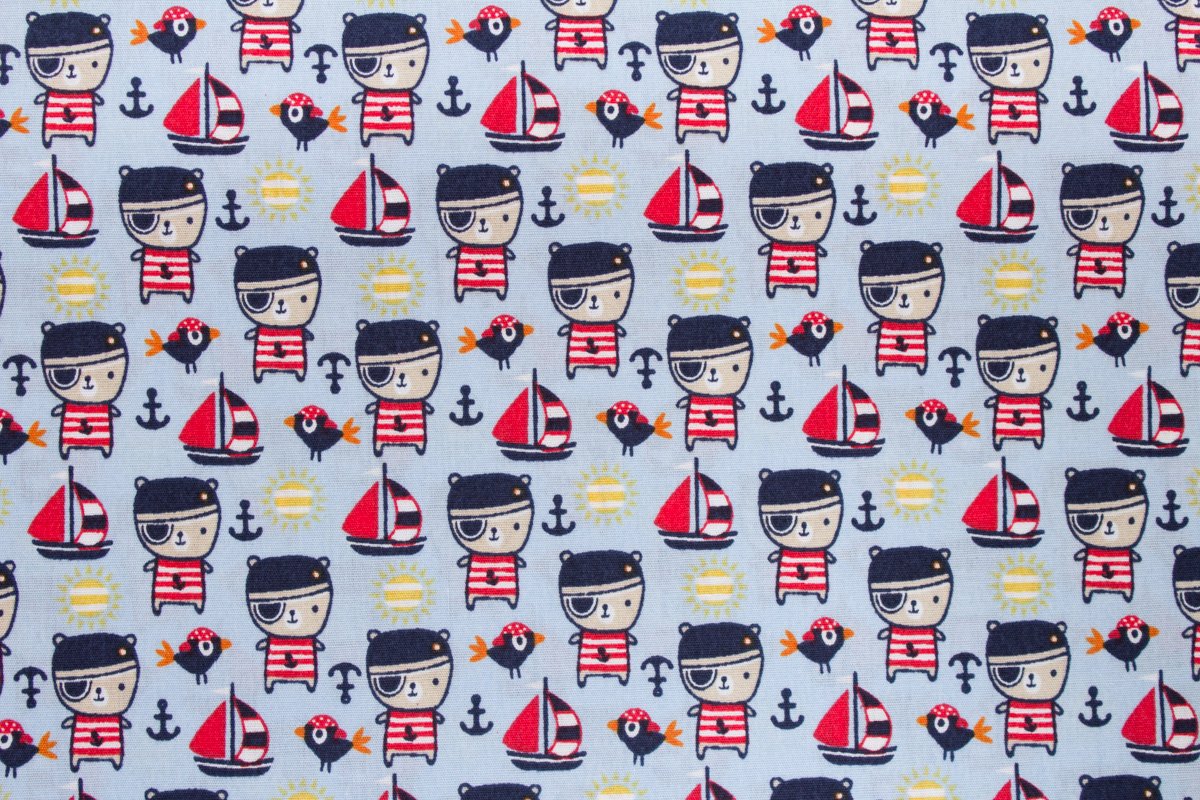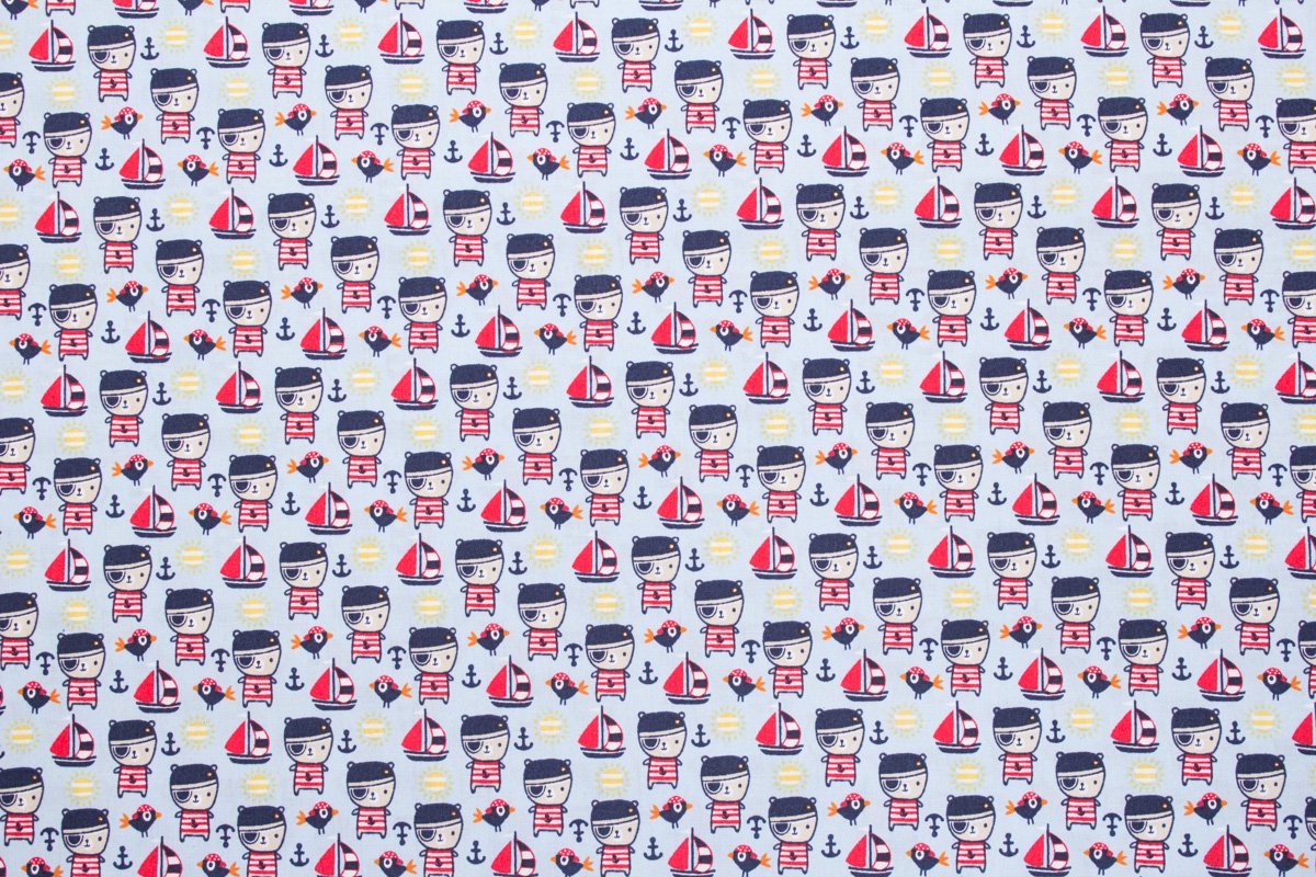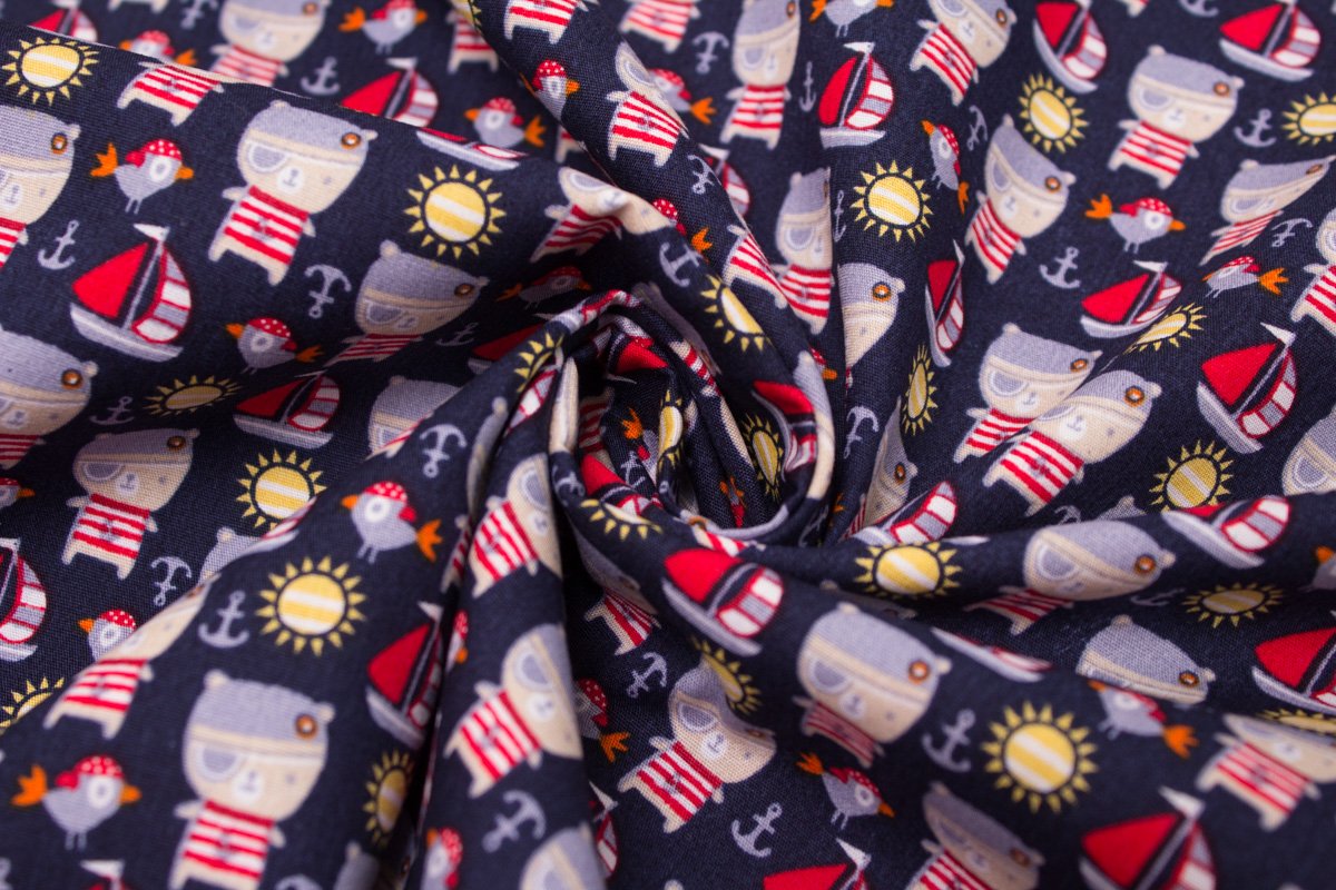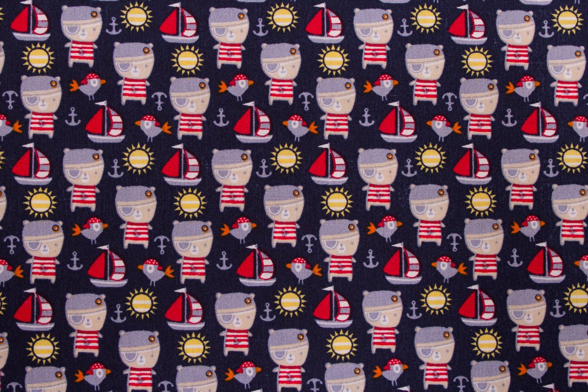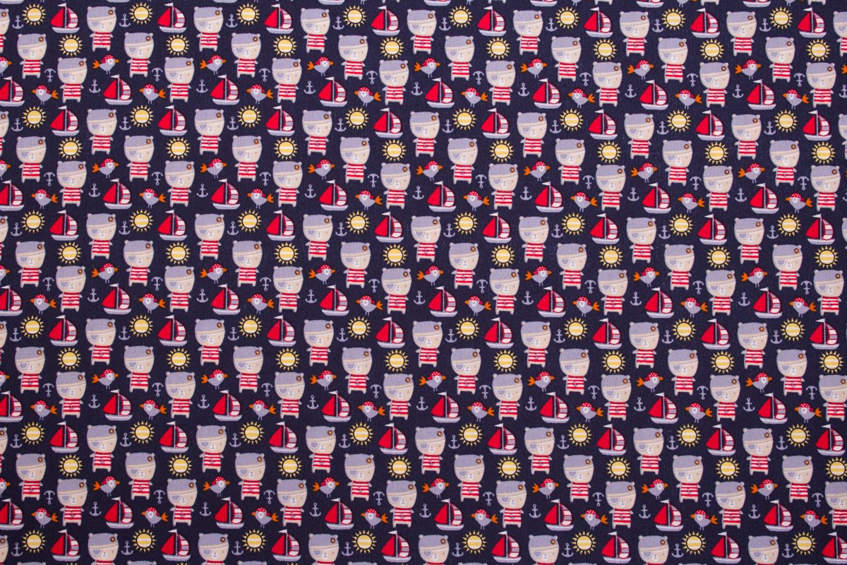 Toller, maritimer Baumwollstoff mit kleinem Bären auf hoher See.