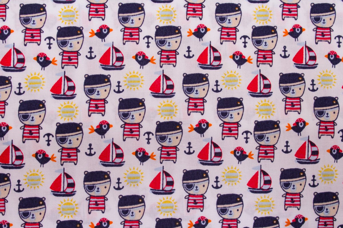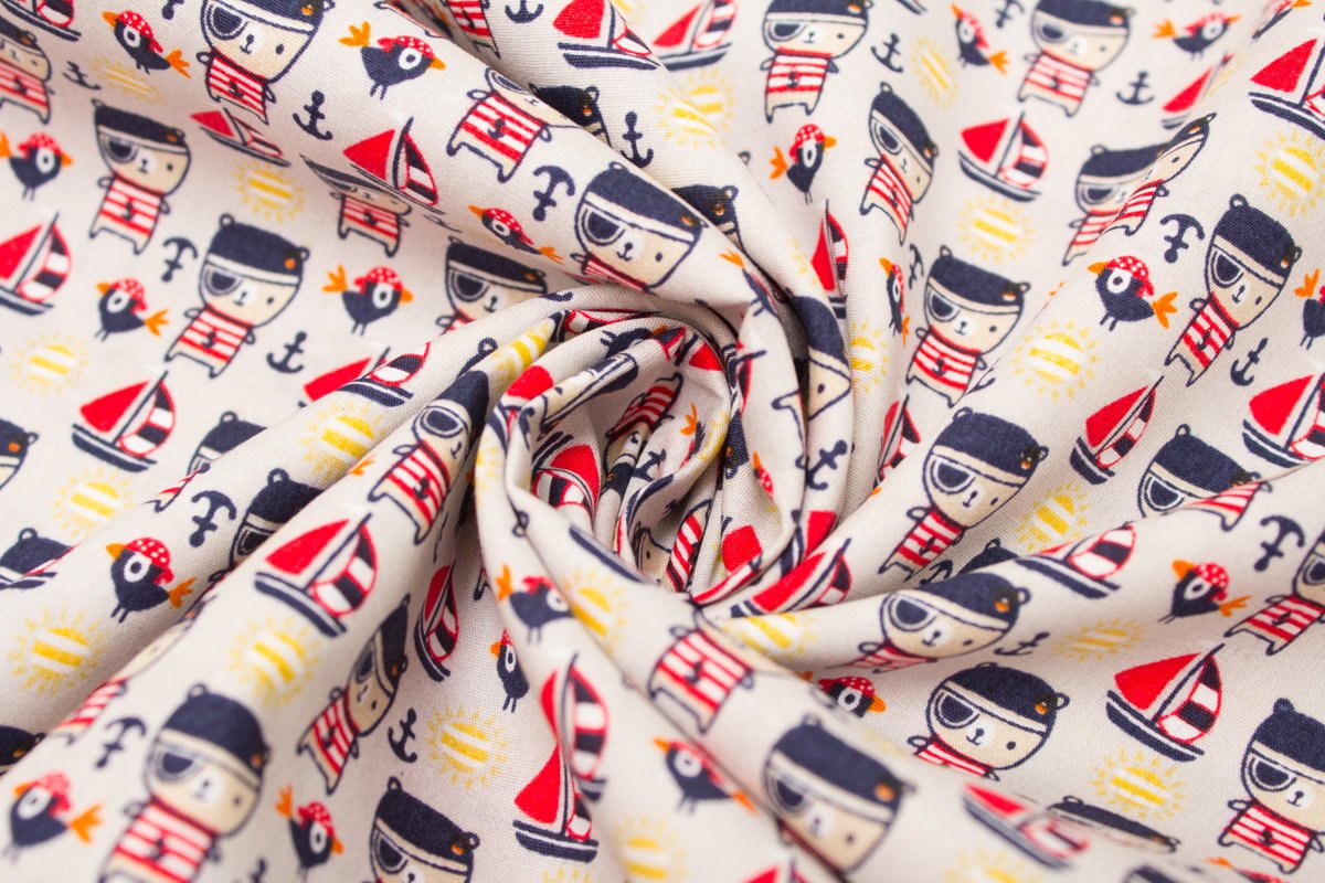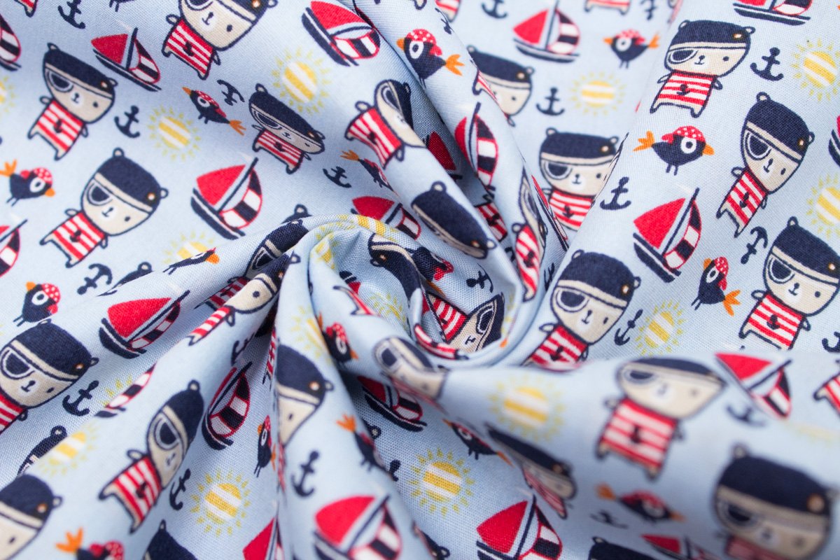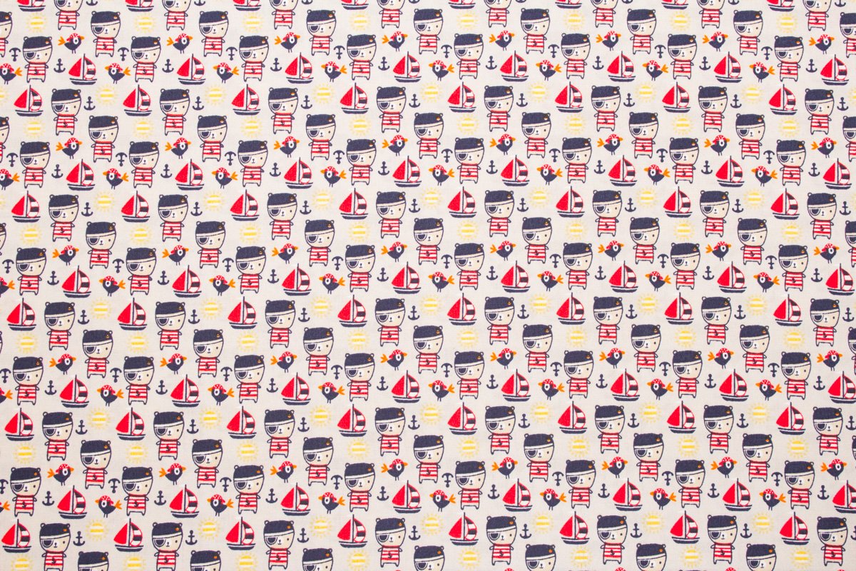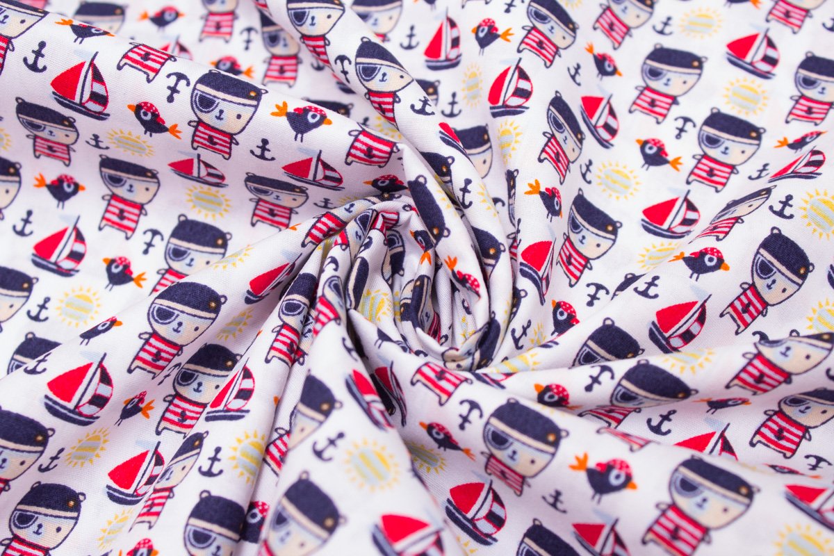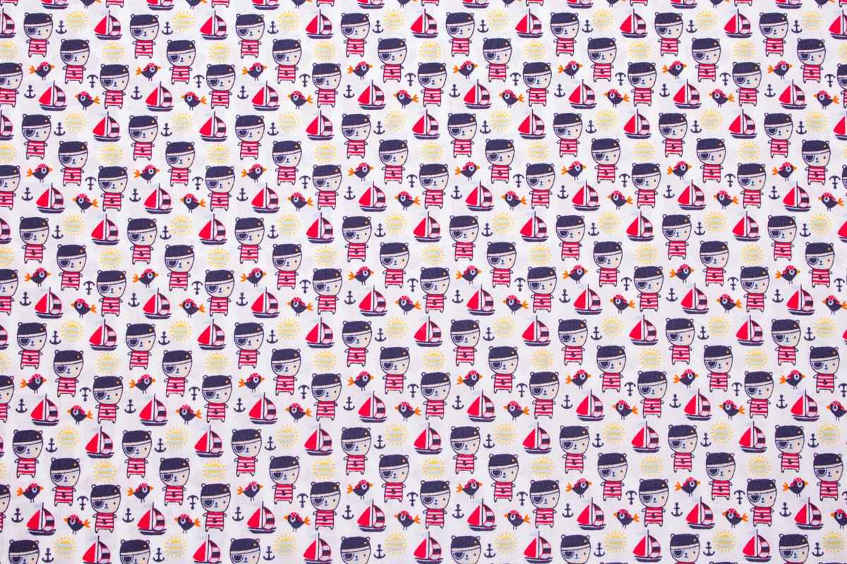 Toller, maritimer Baumwollstoff mit kleinem Bären auf hoher See.