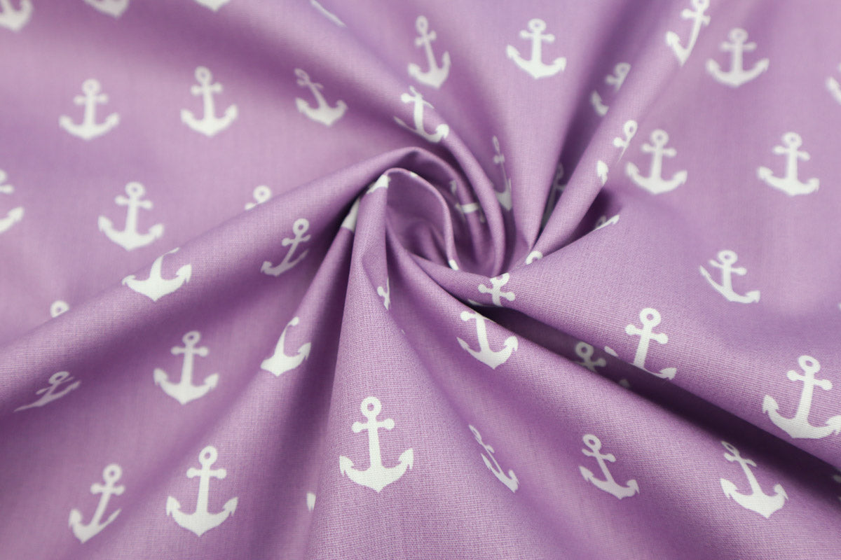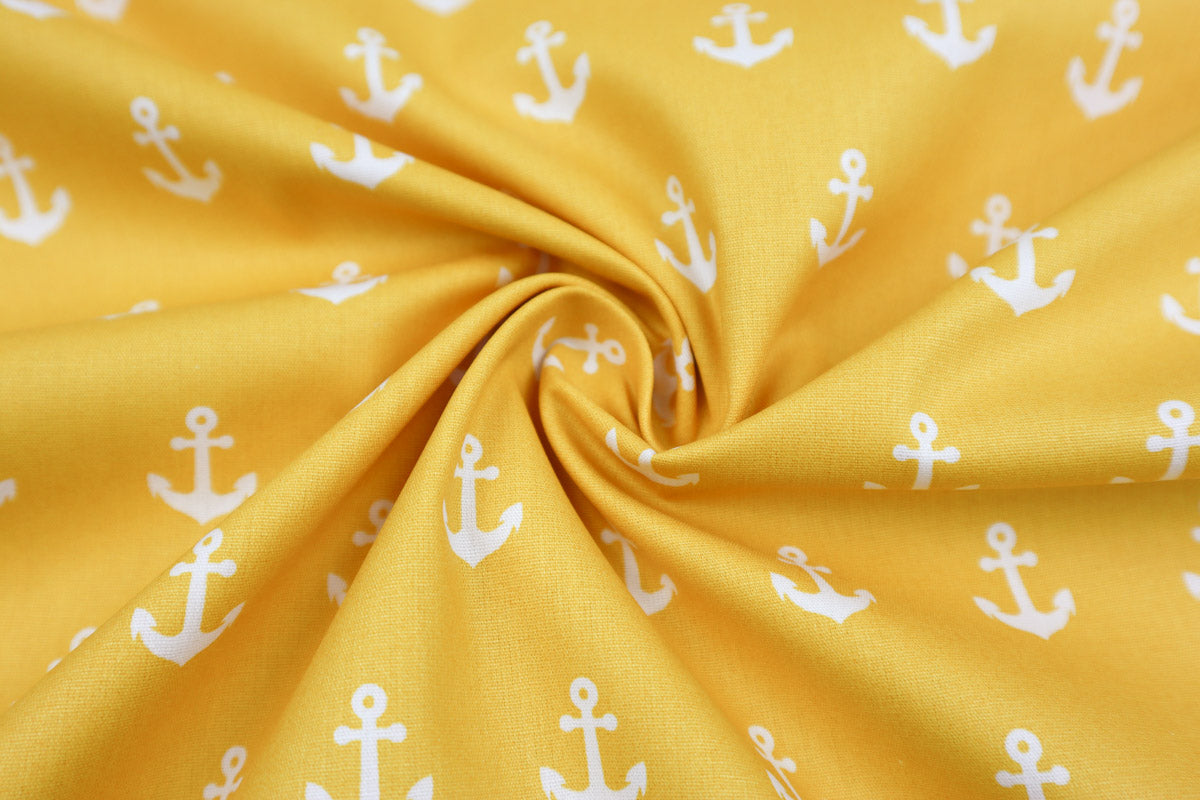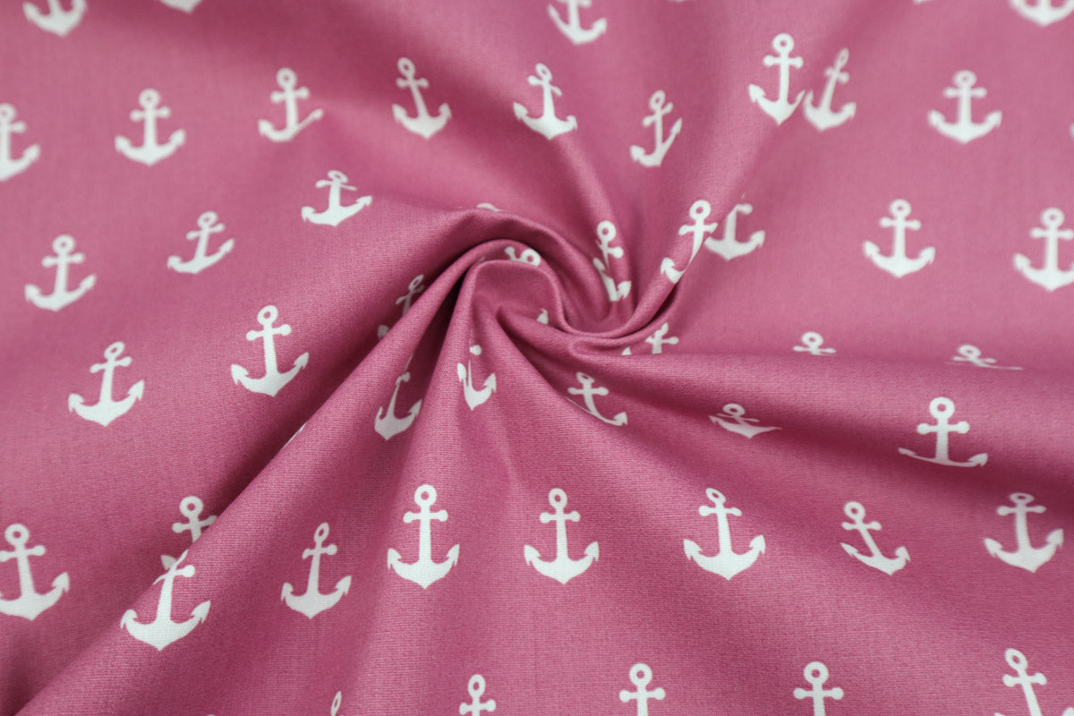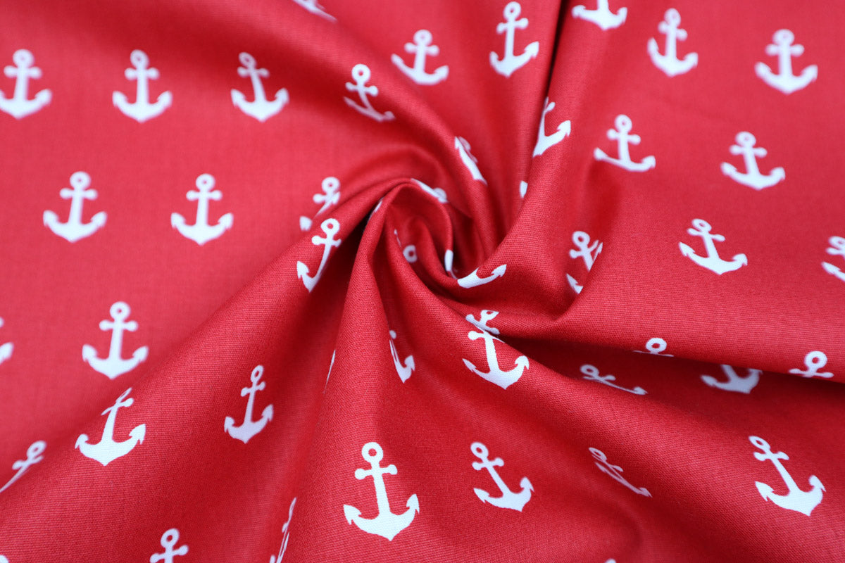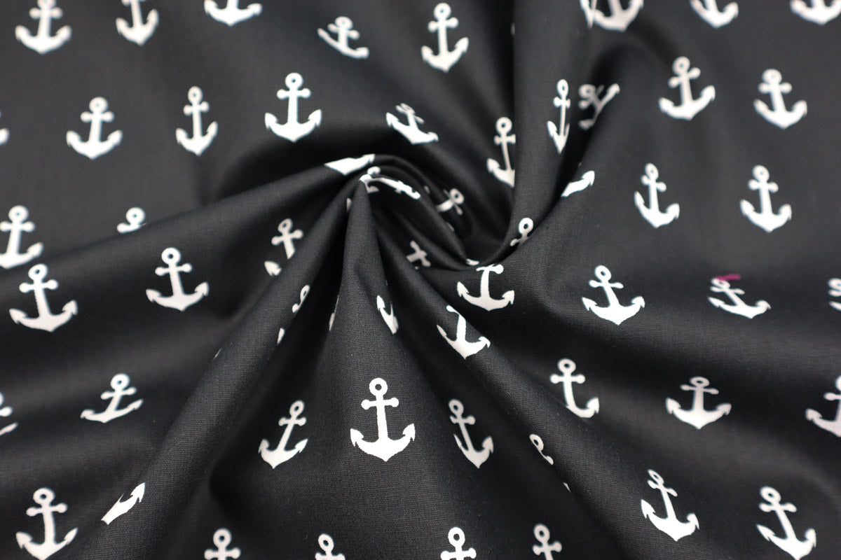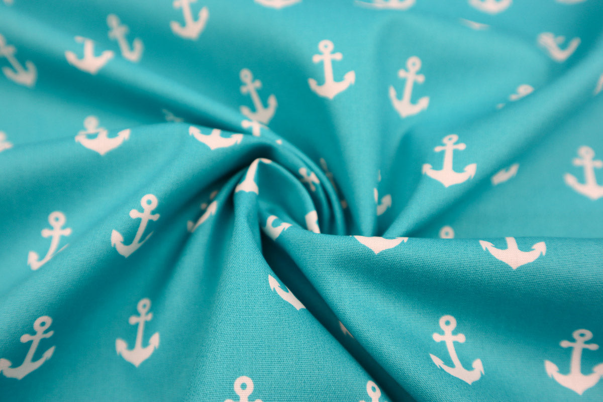 Tolle, maritime Baumwollstoffe mit weißen Ankern.