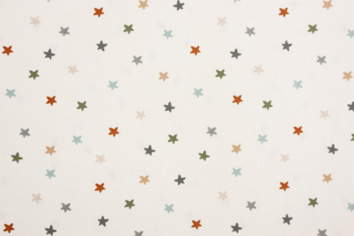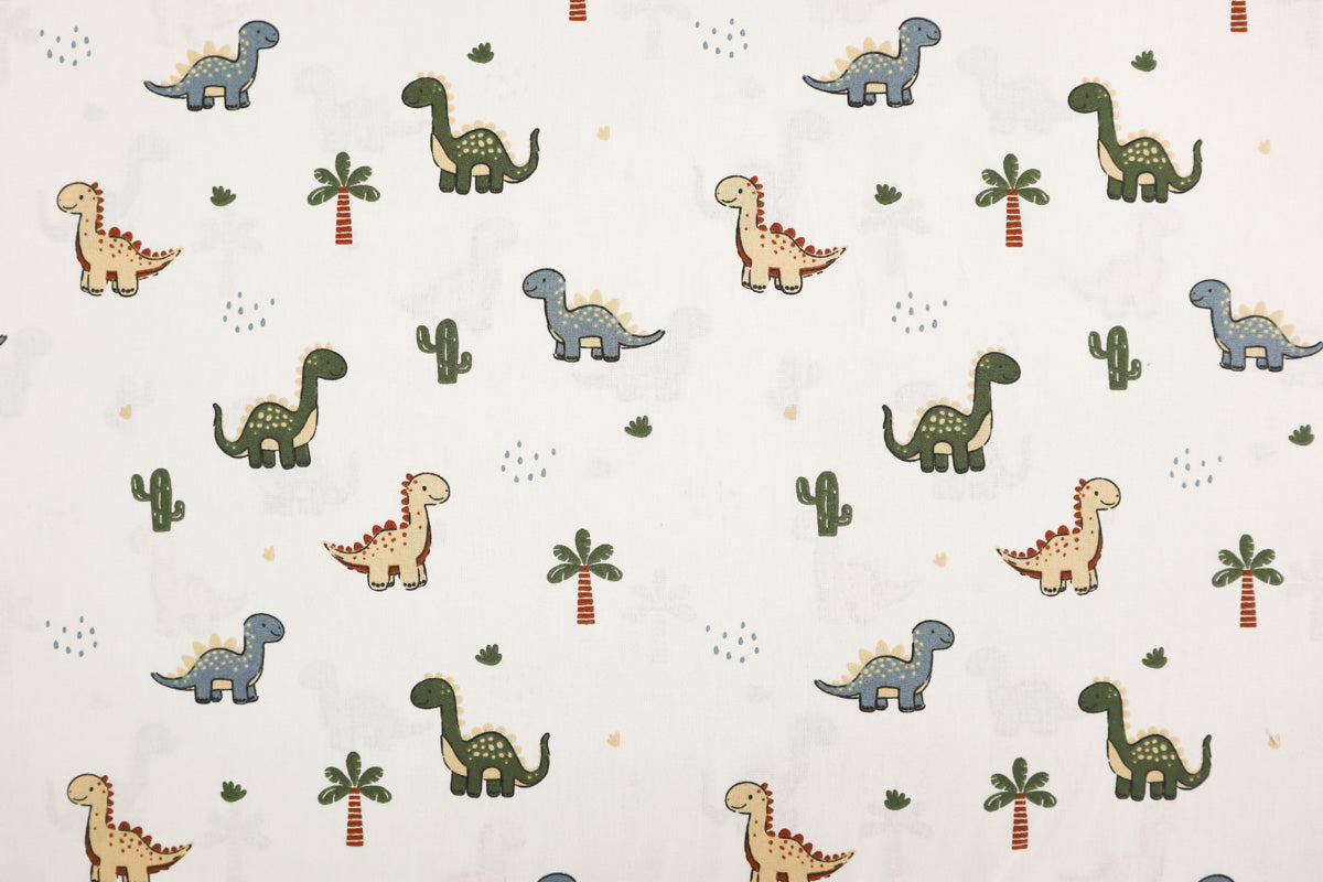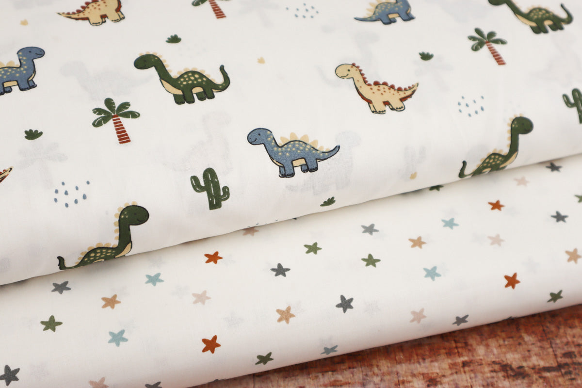 Toller Dinostoff und Sternchenmuster als Kombistoff in gleichen Farben.