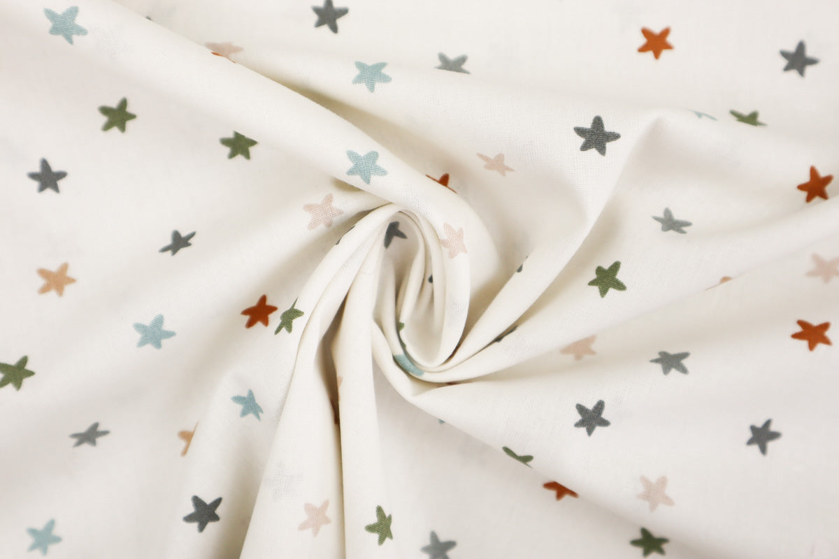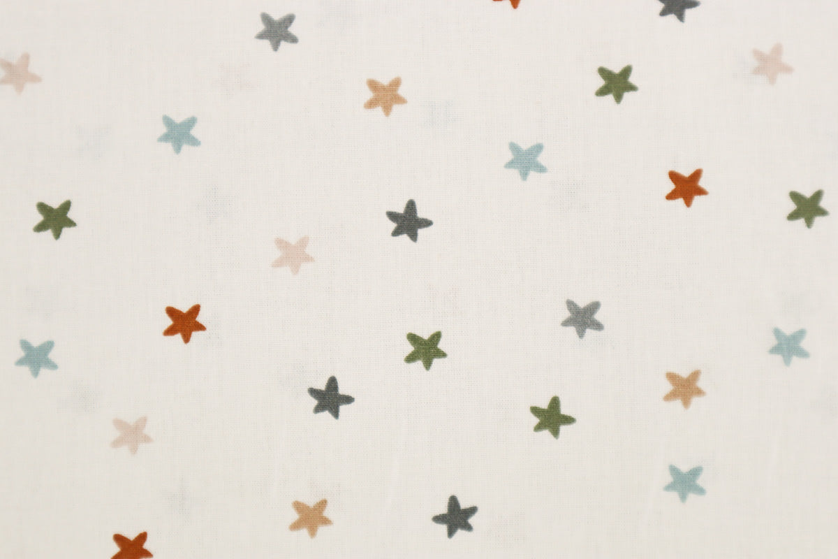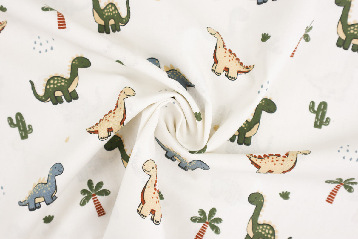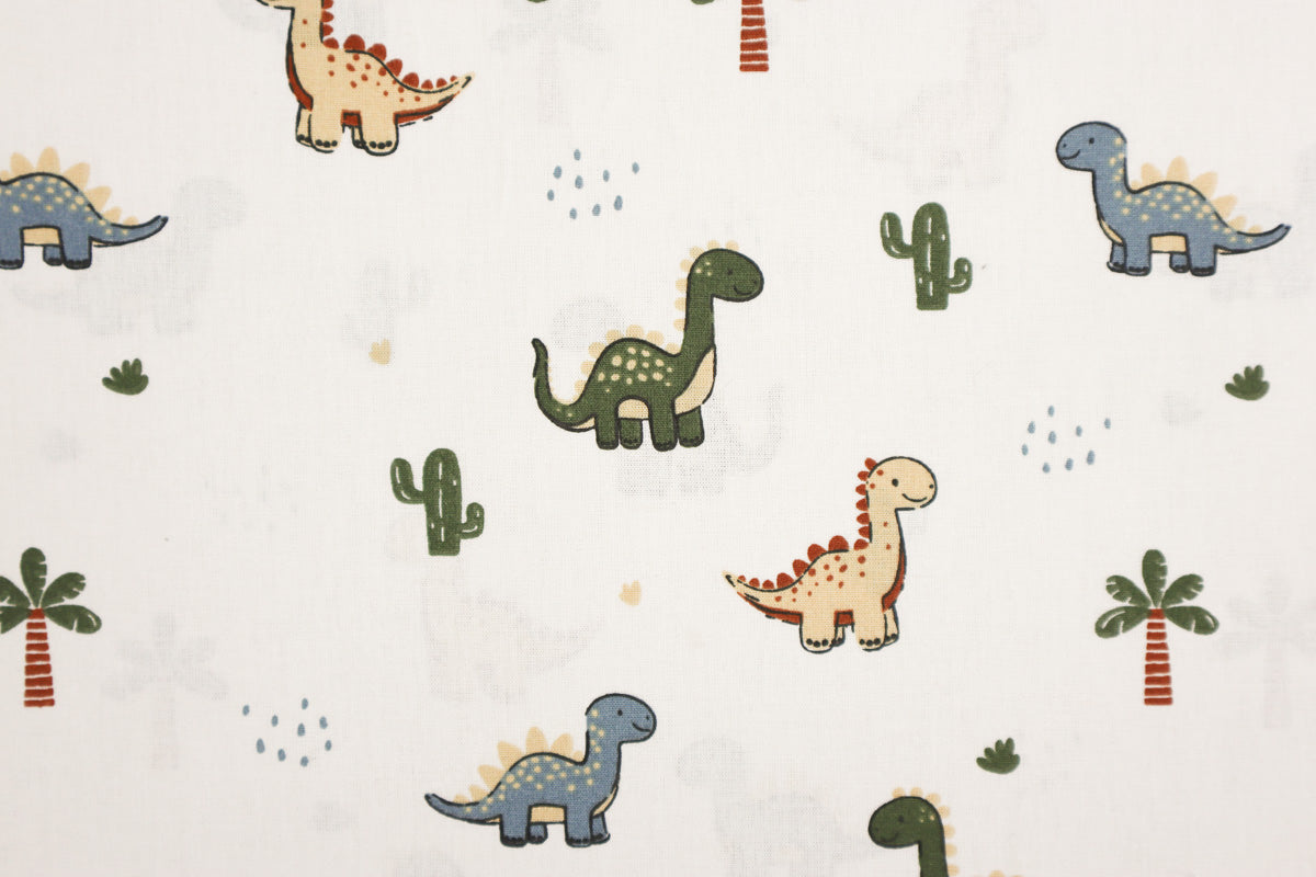 Toller Dinostoff und Sternchenmuster als Kombistoff in gleichen Farben.