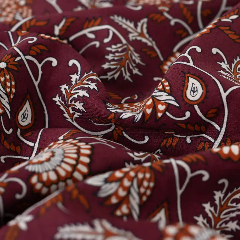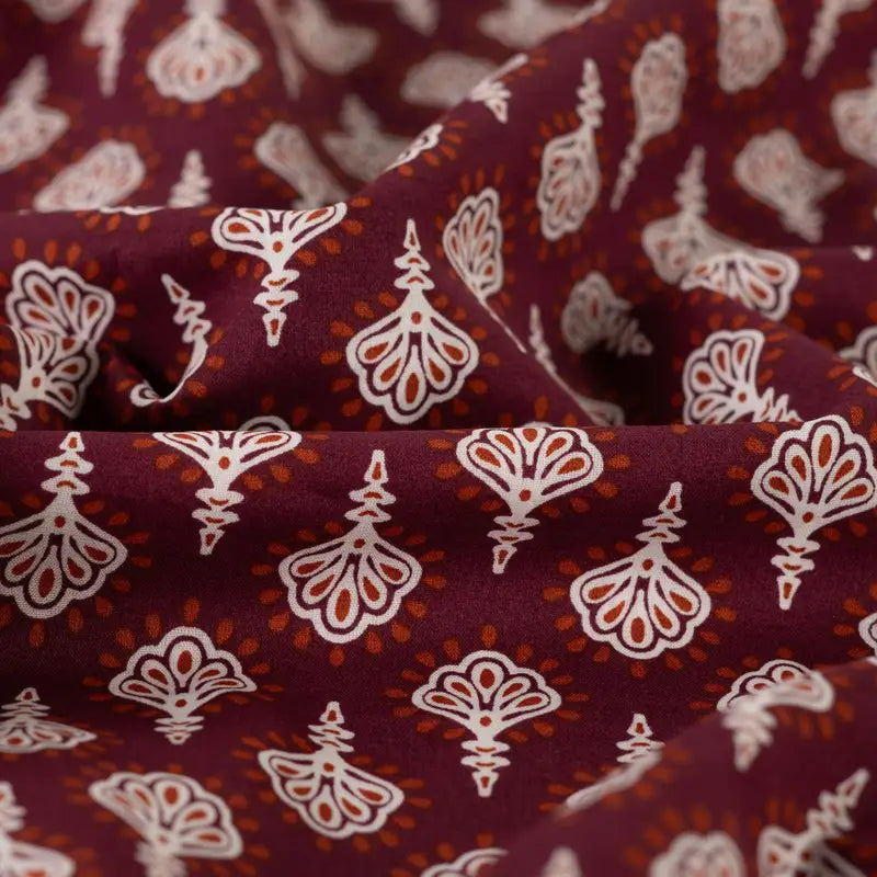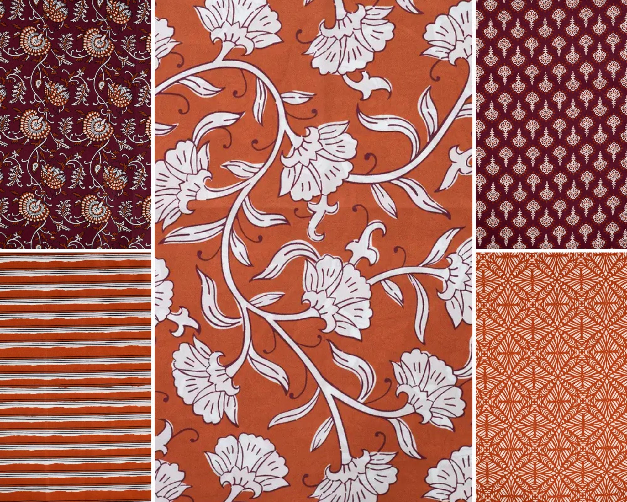 Schöne Baumwollserie in weinrot/cognac mit Blumen, Ornamenten und Streifen - super miteinander kombinierbar.