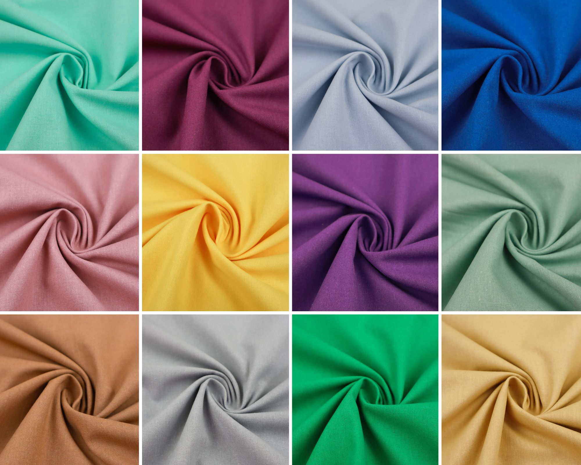 Unifarbener Baumwollstoff in vielen verschiedenen Farbvarianten.