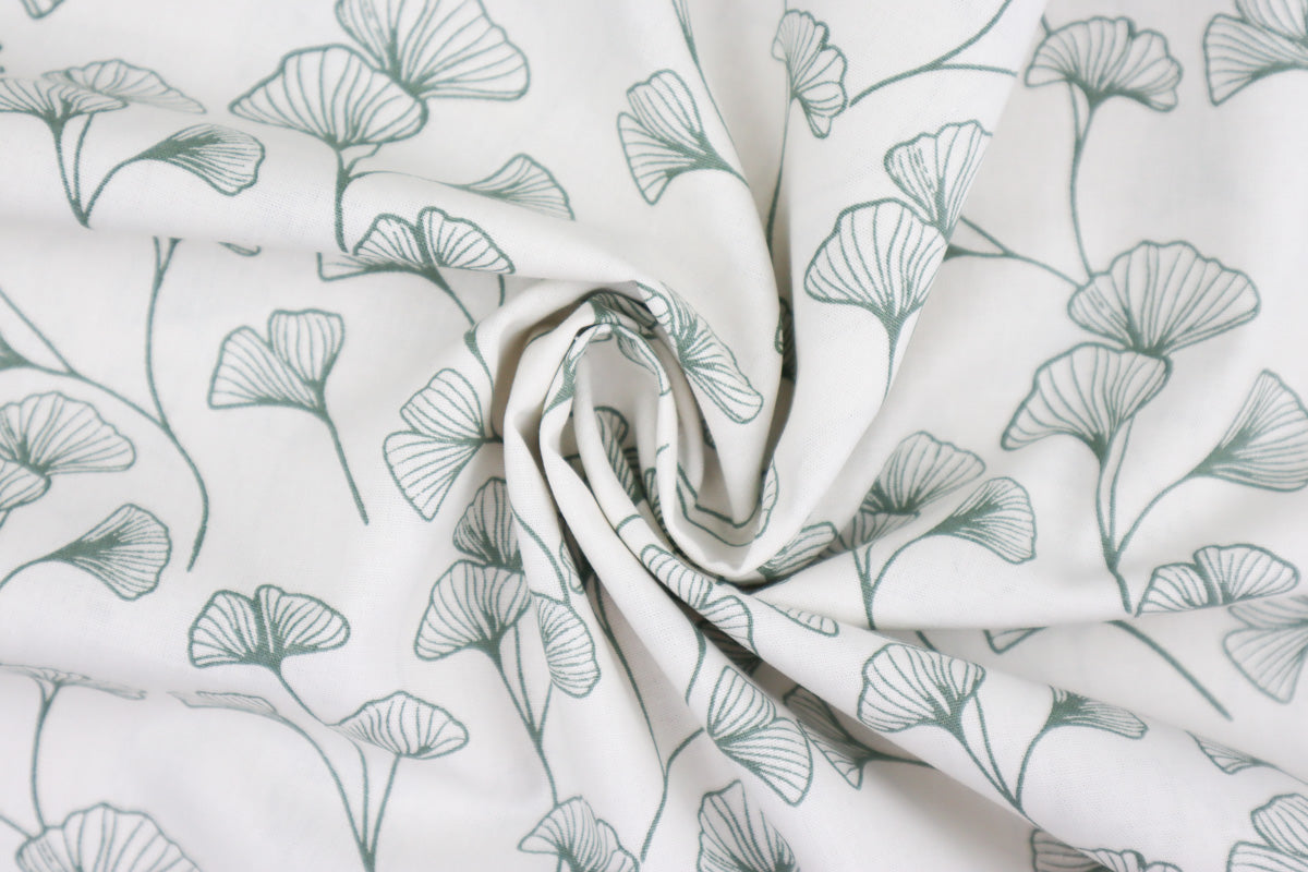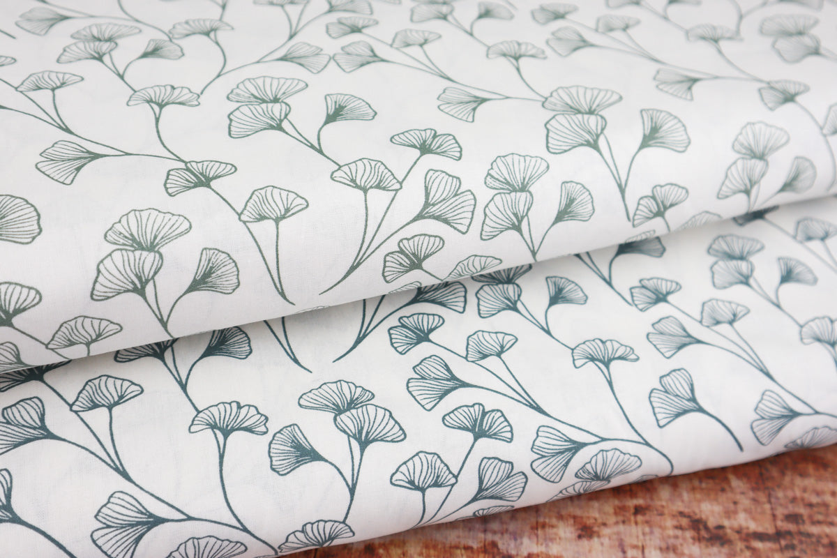 Tolles Muster mit Gingkoblätter-Ranken in 2 unterschiedlichen Grüntönen auf weißem Hintergrund.