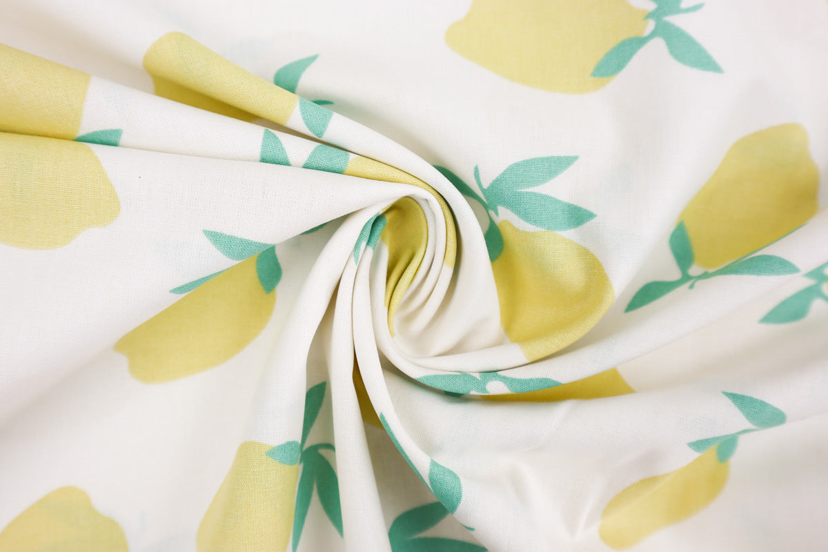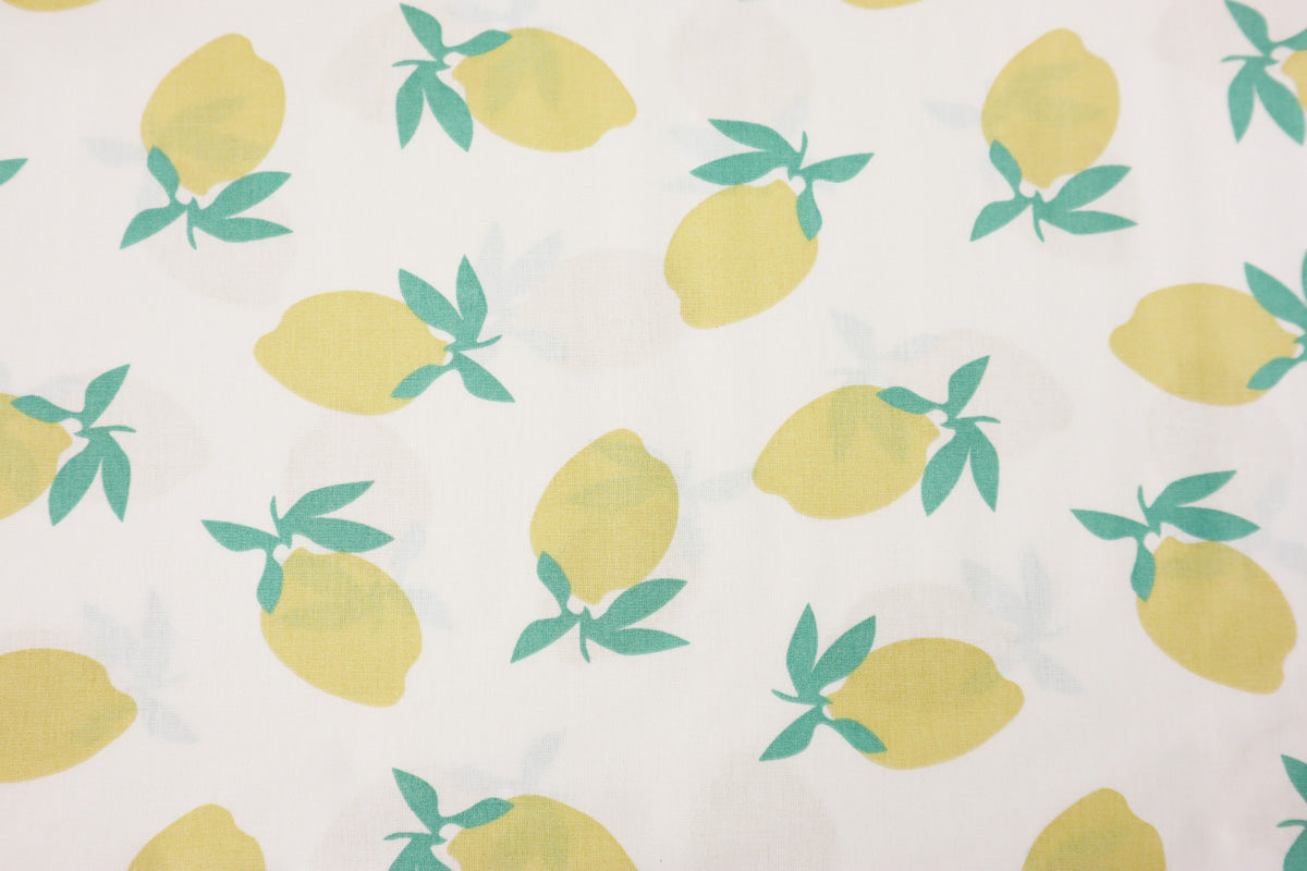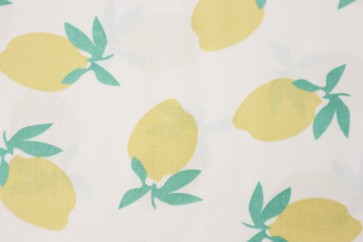 Sommerliches Muster mit Zitronen auf hellem Hintergrund.