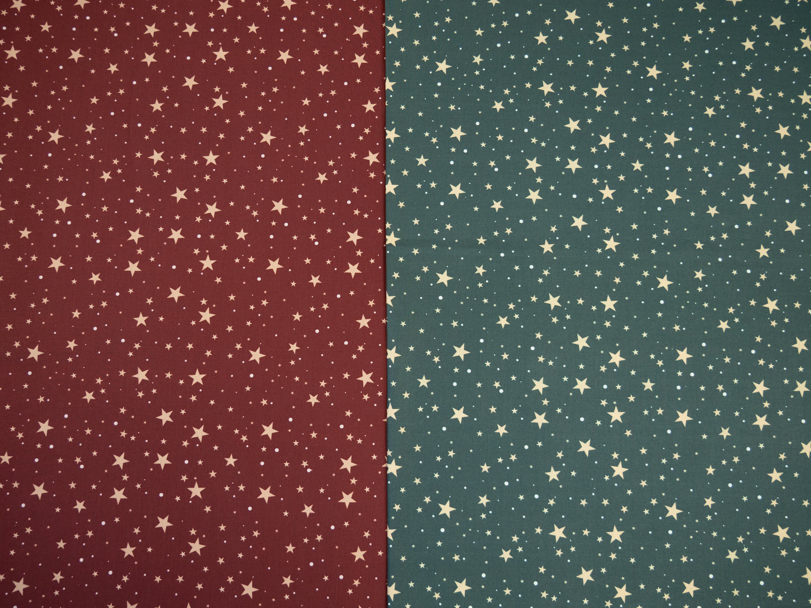Vier Designs in zwei modernen Farbwelten – Bordeaux und Petrol mit einem leichten Vanilleton – ideal für alle, die nach modernen Weihnachtsfarben suchen, die in jede Umgebung passen. Die Designs und Farben lassen sich wunderbar miteinander kombinieren: Für Winter- und Weihnachtsdekorationen und -geschenke, als nachhaltige Geschenkverpackungen, für Adventskalender und viele weitere Nähideen. So eine schöne Qualität mit einem ganz leichten seidigen Schimmer.