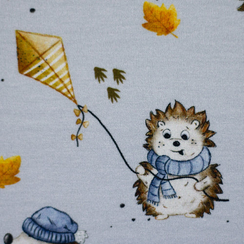 Eichhörnchen und Igel gehören unbedingt zu einem Herbstdesign! Die niedlichen Tiere genießen den Herbst: Das Eichhörnchen in seinem süßen Outfit sammelt als Vorräte für den Winter Eicheln. Die Igel lassen am schönen Herbsttag Drachen steigen und haben viel Spaß daran.
