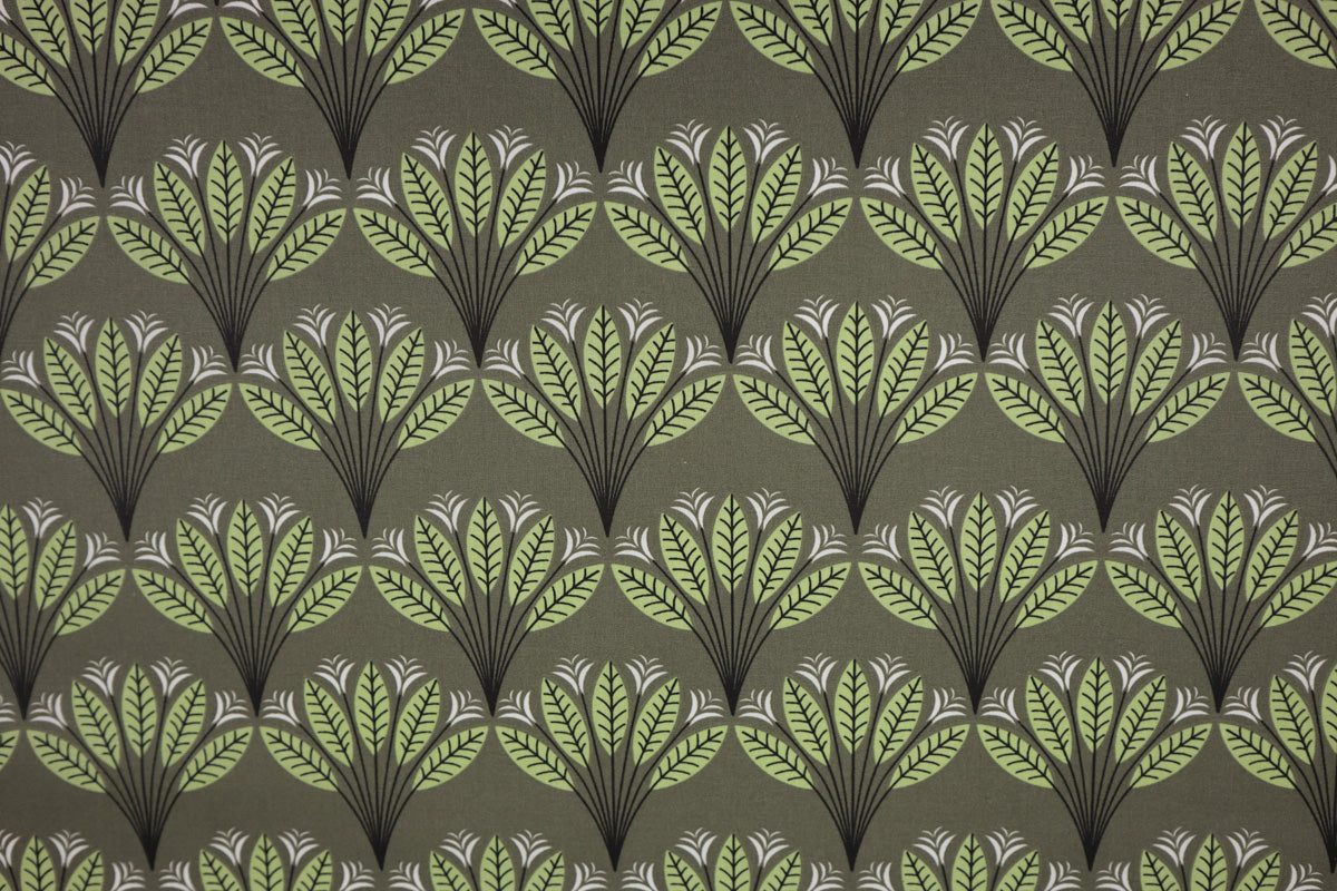 Schönes Muster mit abstraktem Blättermuster in hellem Grün auf khakifarbenem Hintergrund.