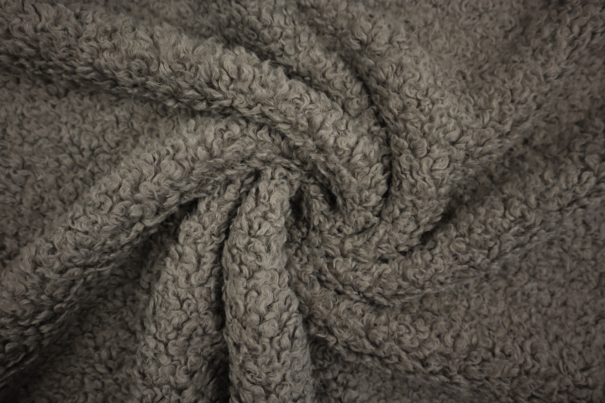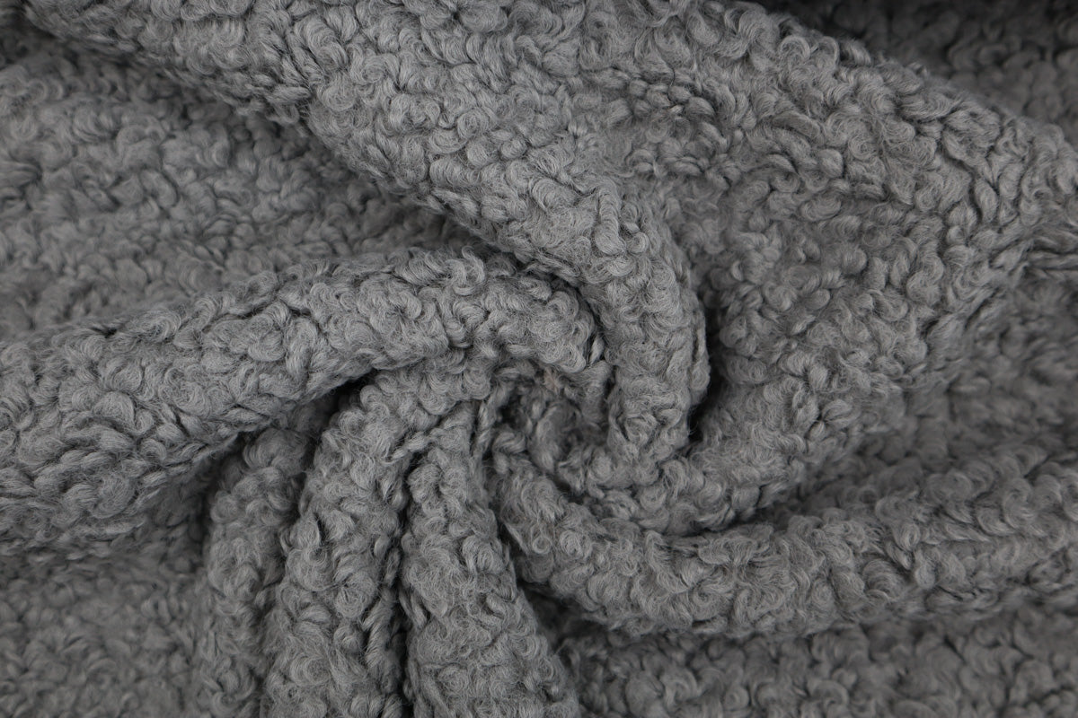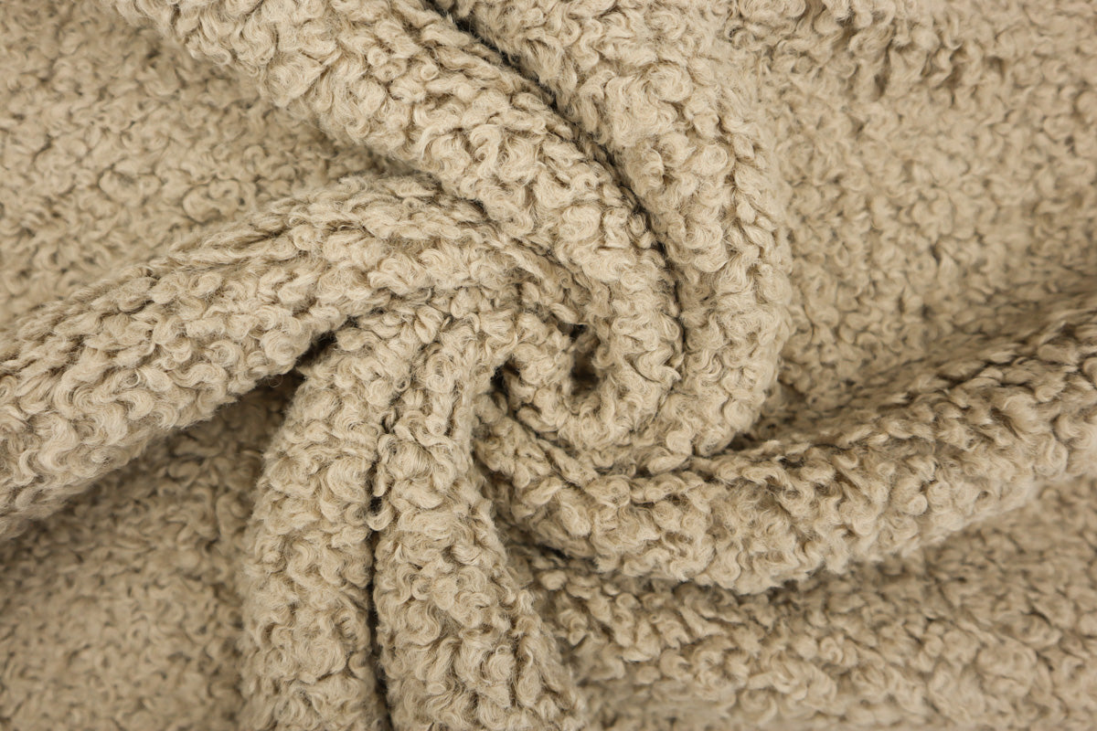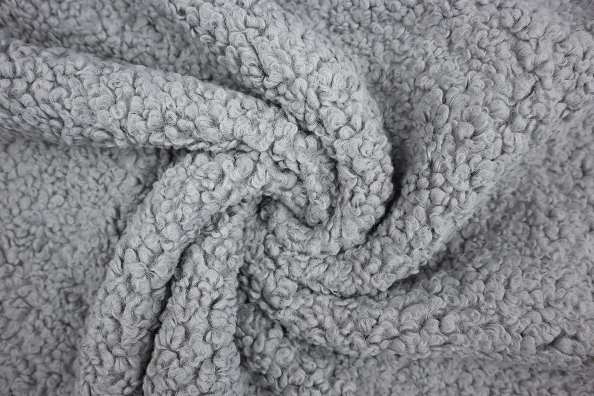 Kuscheliger, griffiger Bouclé-Stoff. Die Qualität ist nicht zu schwer und deshalb super trageangenehm.