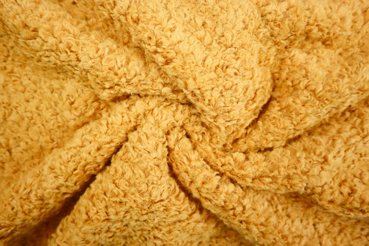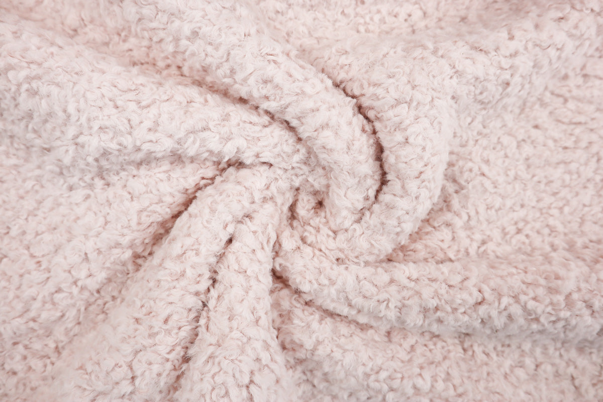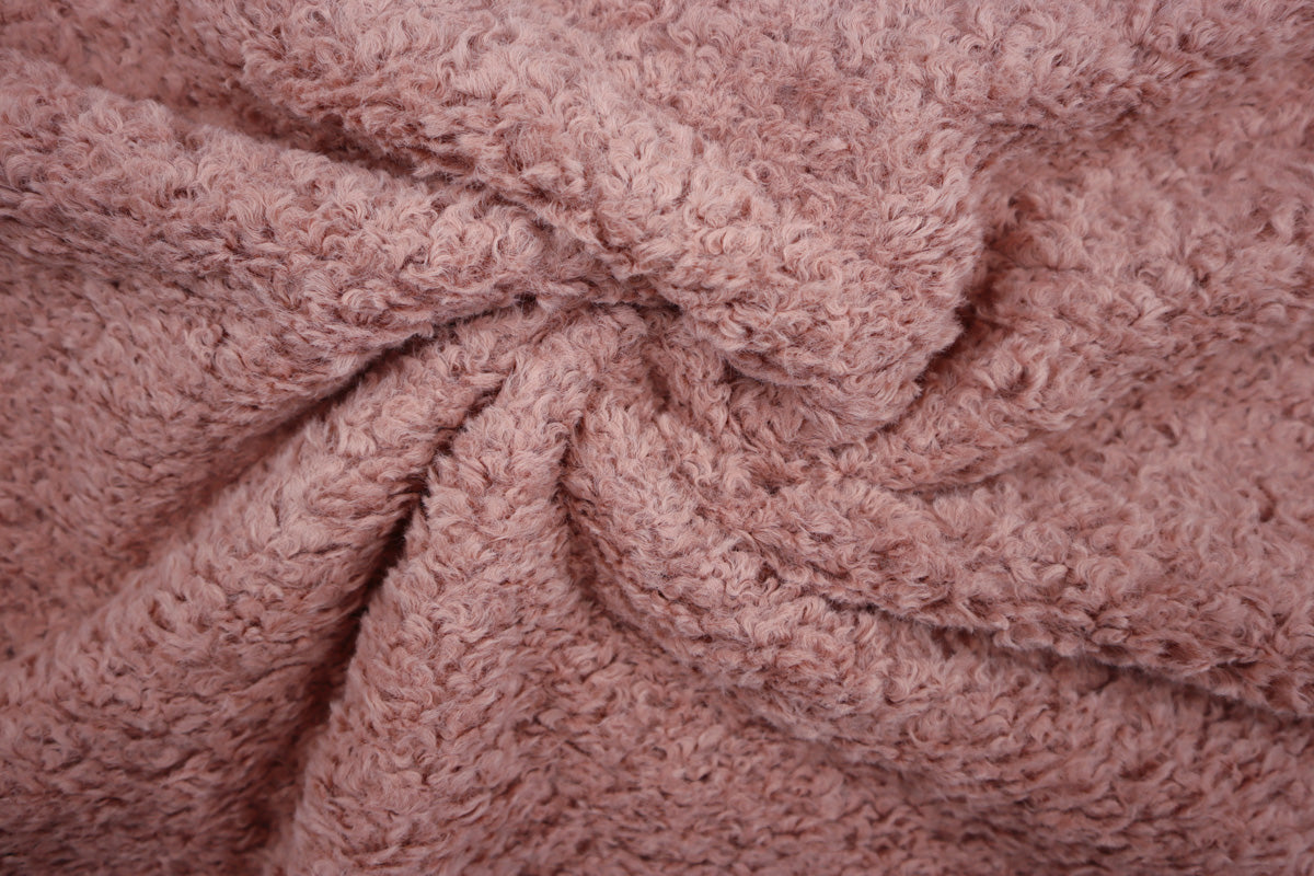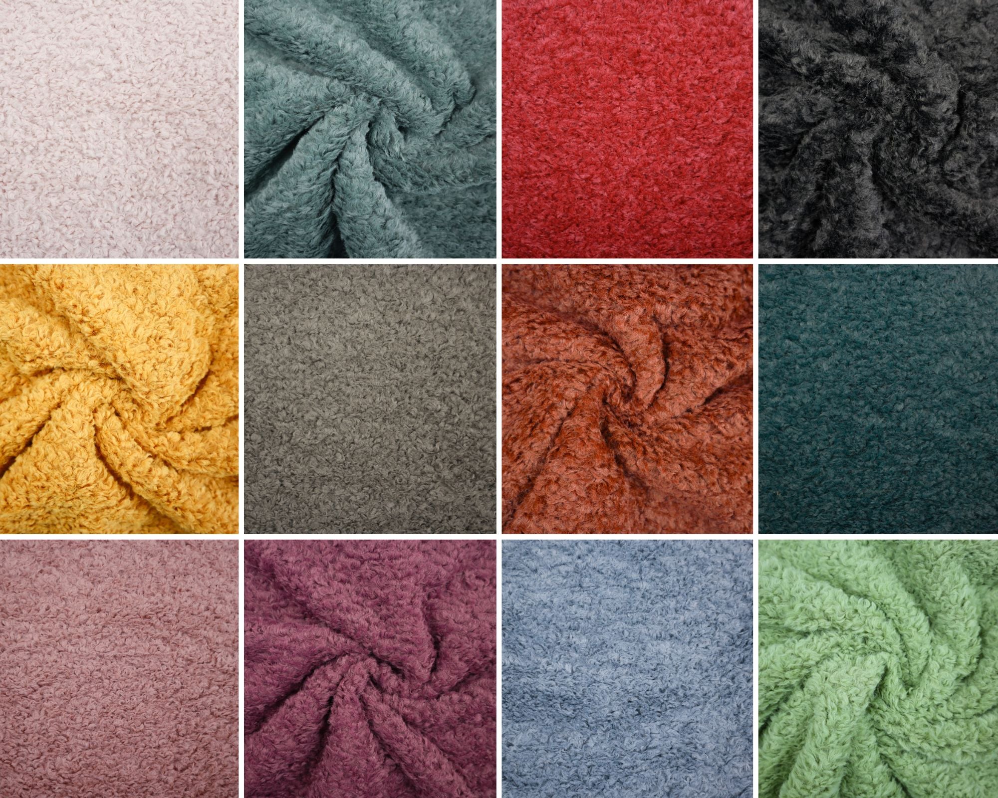 Kuscheliger, griffiger Bouclé-Stoff. Die Qualität ist nicht zu schwer und deshalb super trageangenehm.