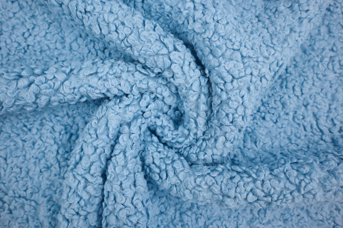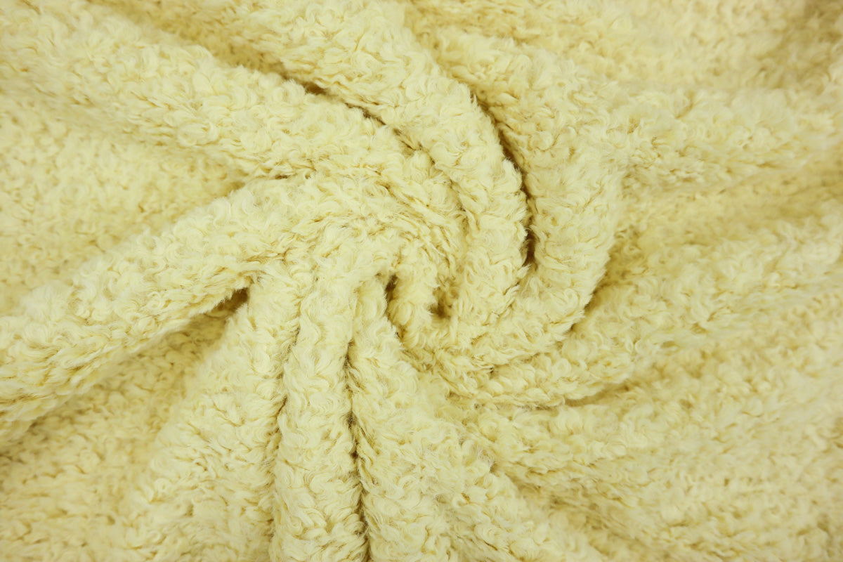 Bouclè hat eine schlingenartige Oberfläche, ist wenig empfindlich und knittert kaum. Der Stoff ist besonders leicht zu verarbeiten, da die Schnittstellen nicht fransen.