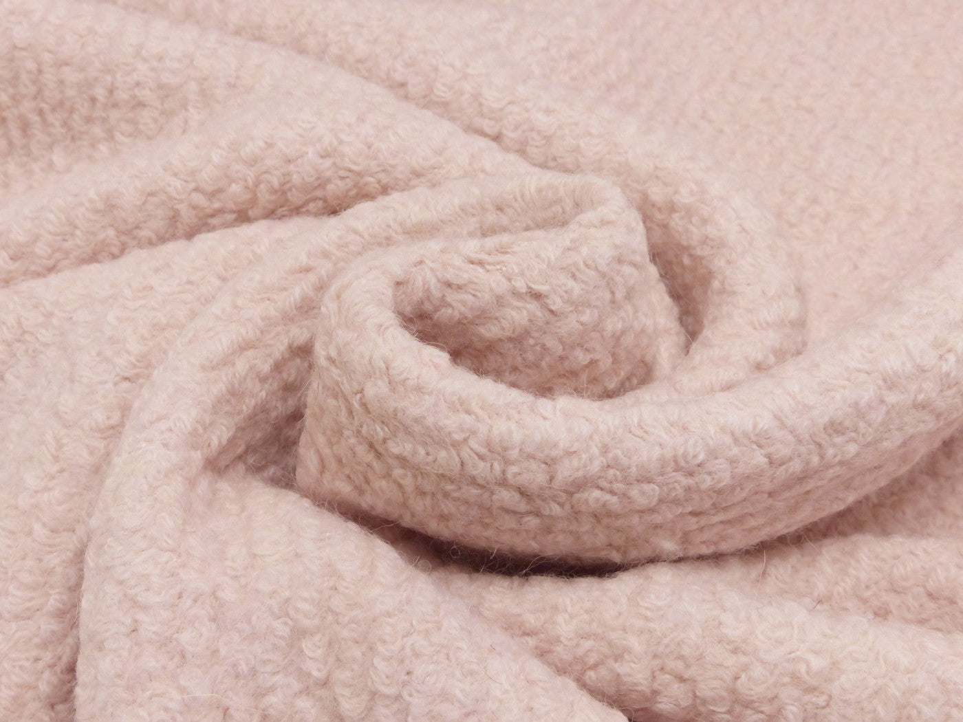 Kuscheliger, griffiger Bouclé-Stoff. Die Qualität ist nicht zu schwer und deshalb super trageangenehm.