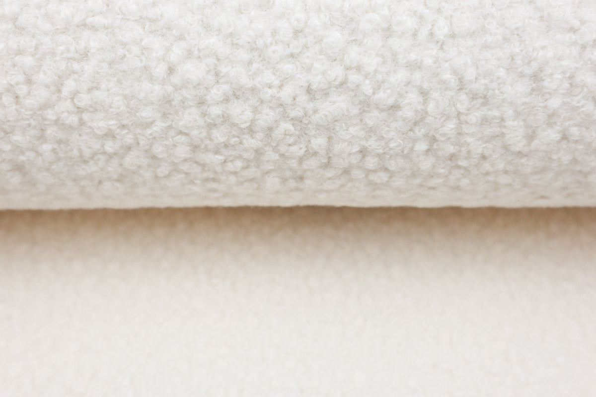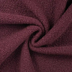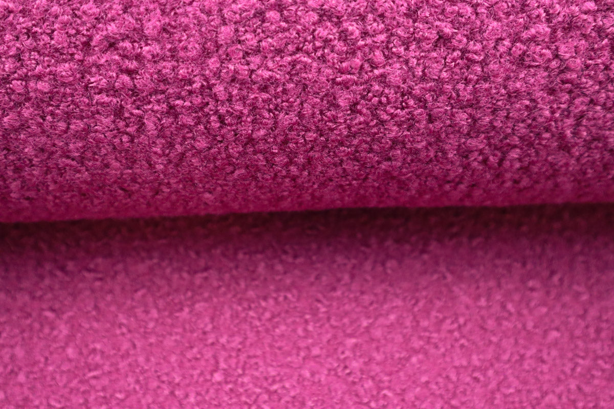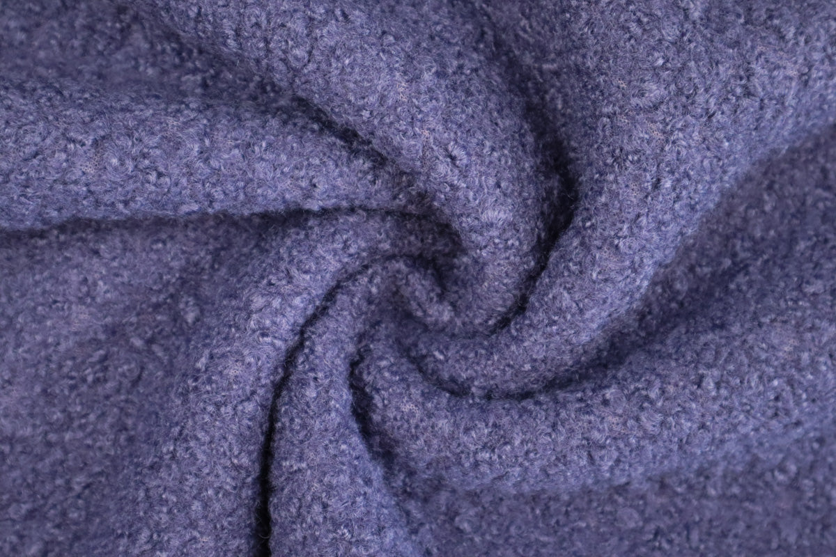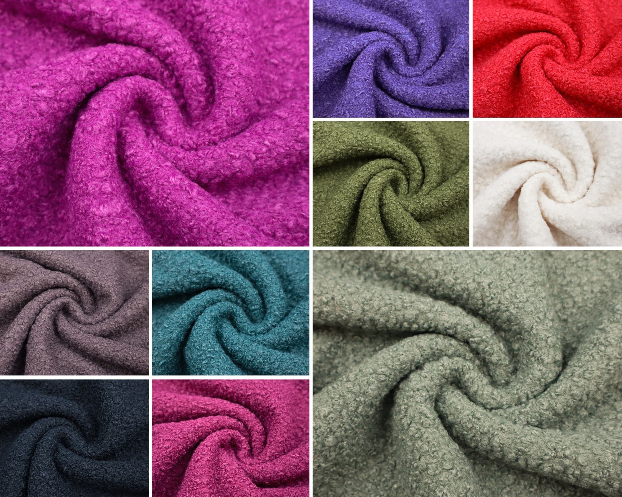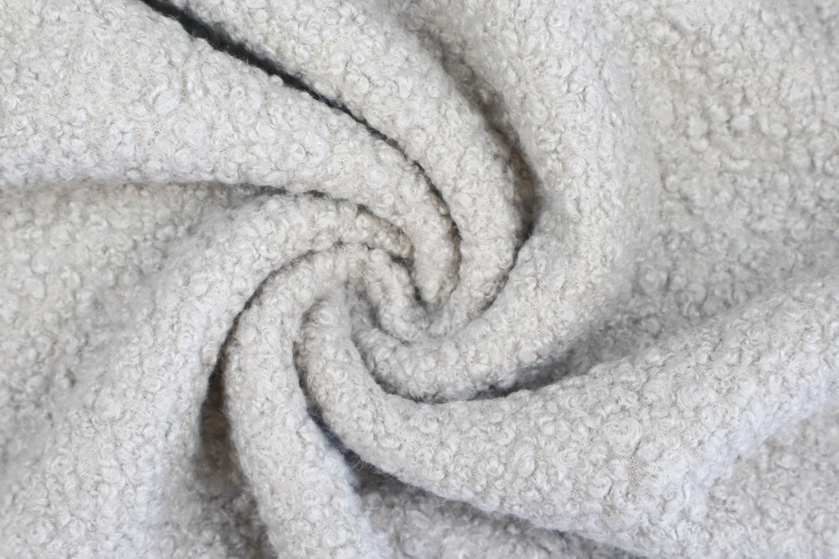 Boucle hat eine schlingenartige Oberfläche, ist wenig empfindlich und knittert kaum. Der Stoff ist besonders leicht zu verarbeiten, da die Schnittstellen nicht fransen.