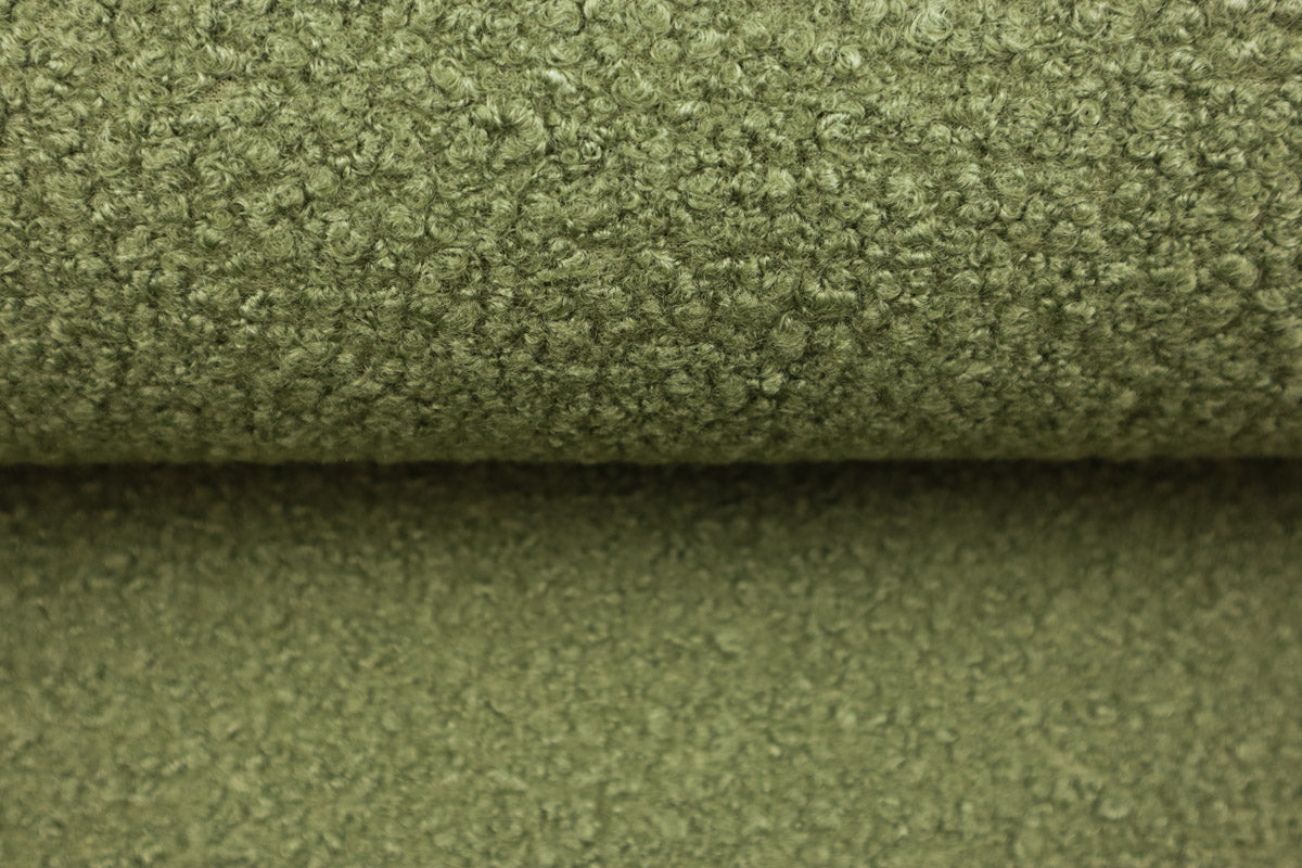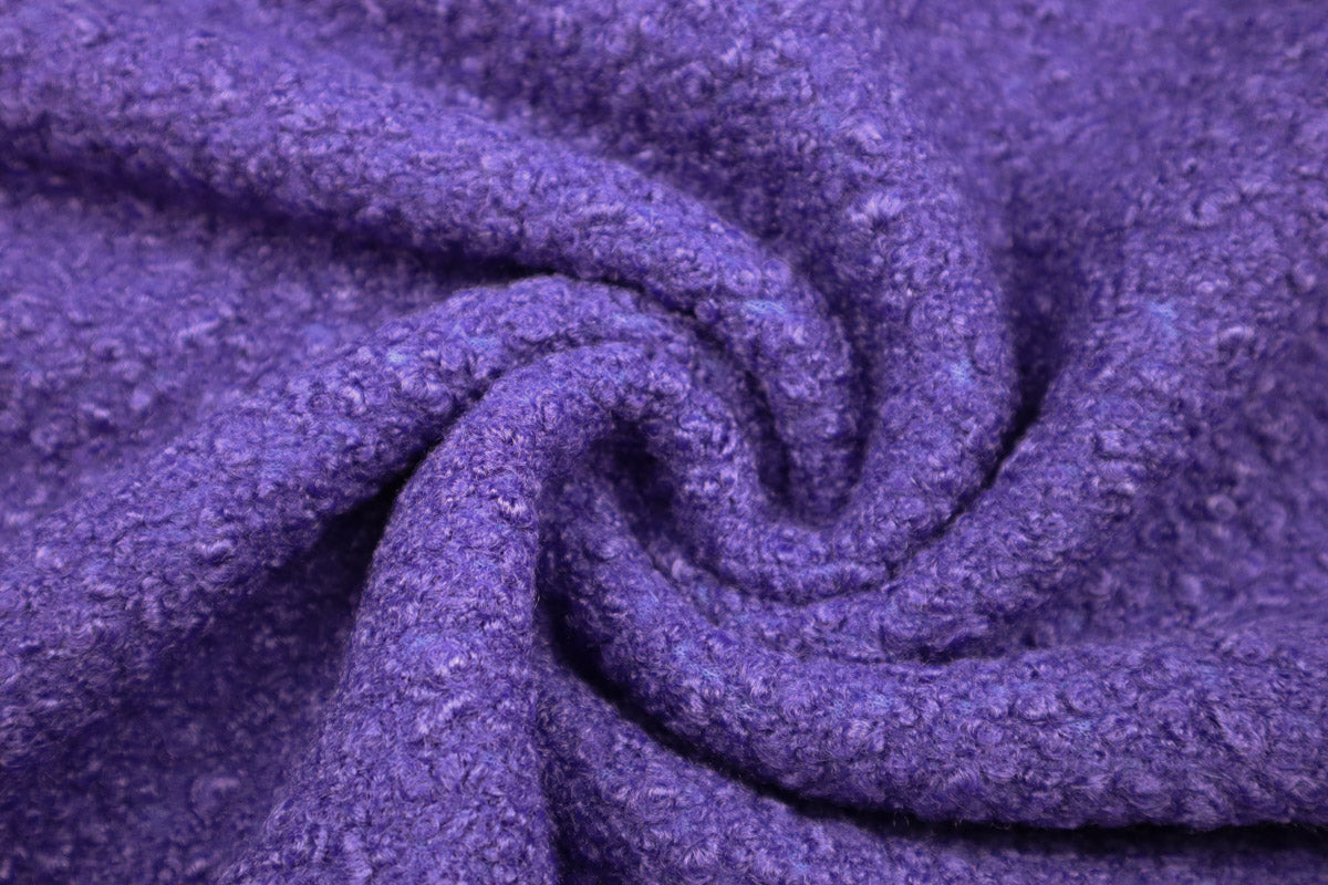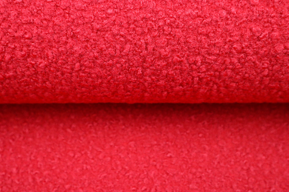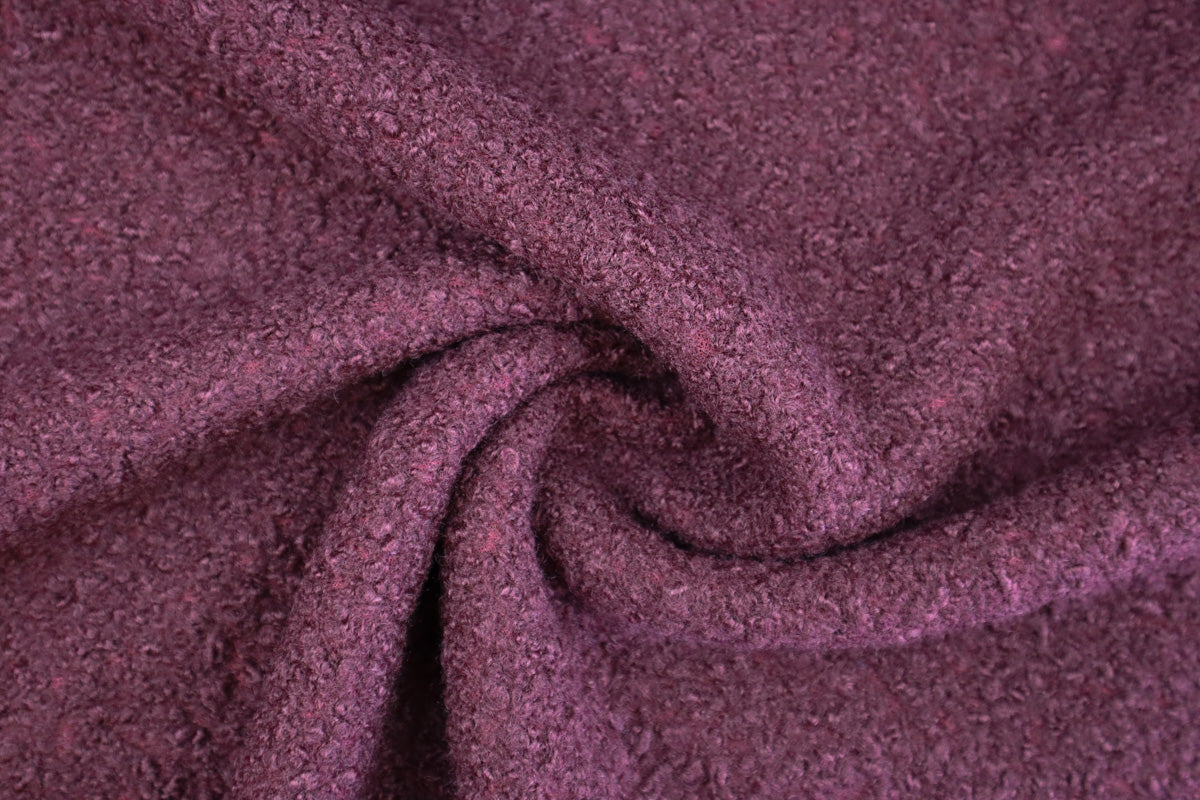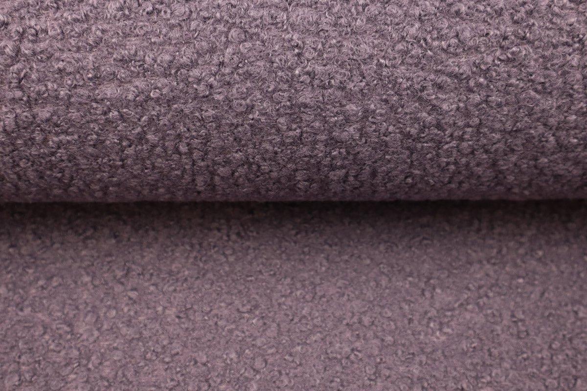 Boucle hat eine schlingenartige Oberfläche, ist wenig empfindlich und knittert kaum. Der Stoff ist besonders leicht zu verarbeiten, da die Schnittstellen nicht fransen.