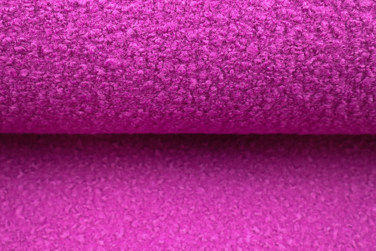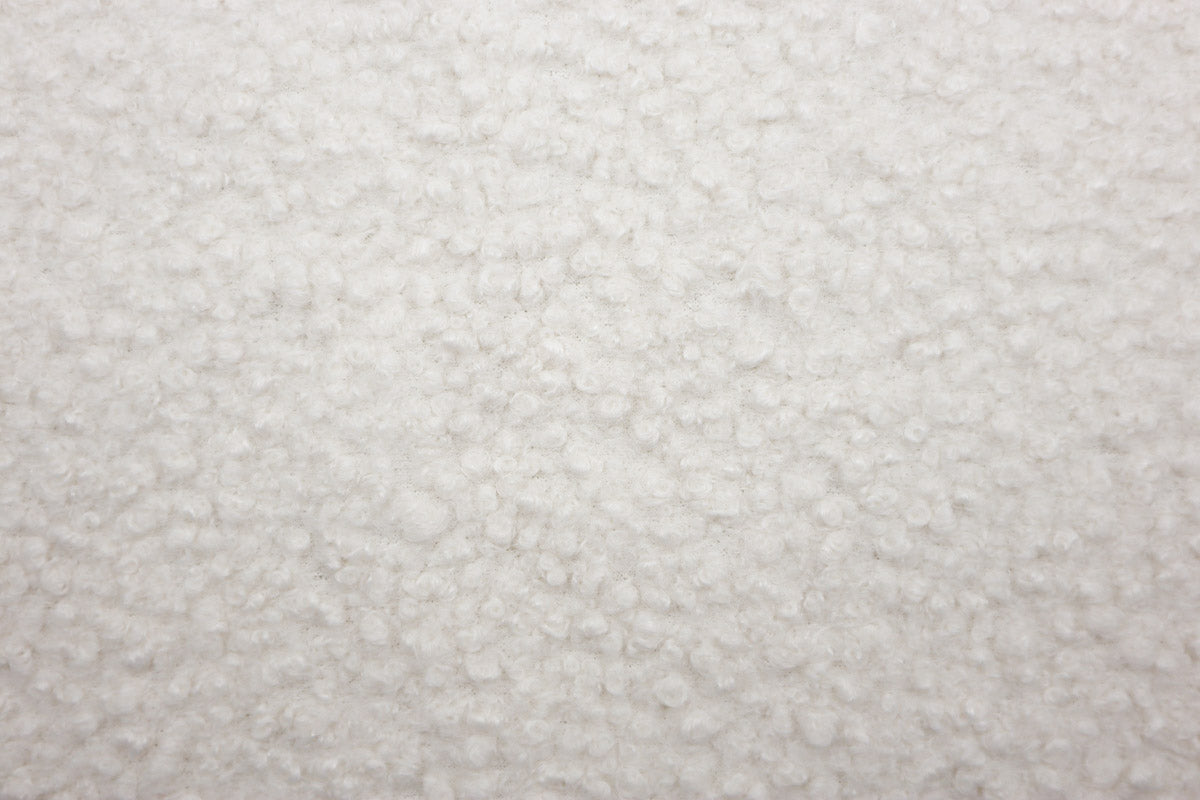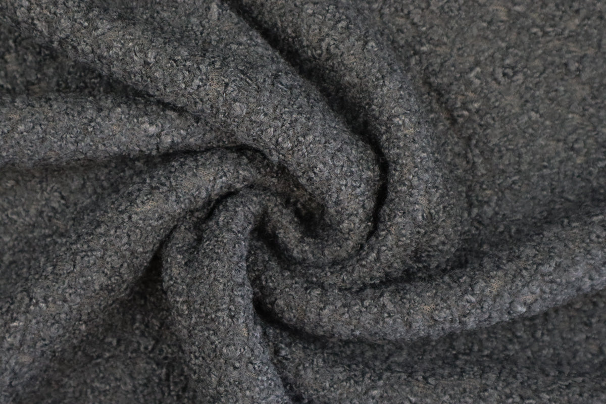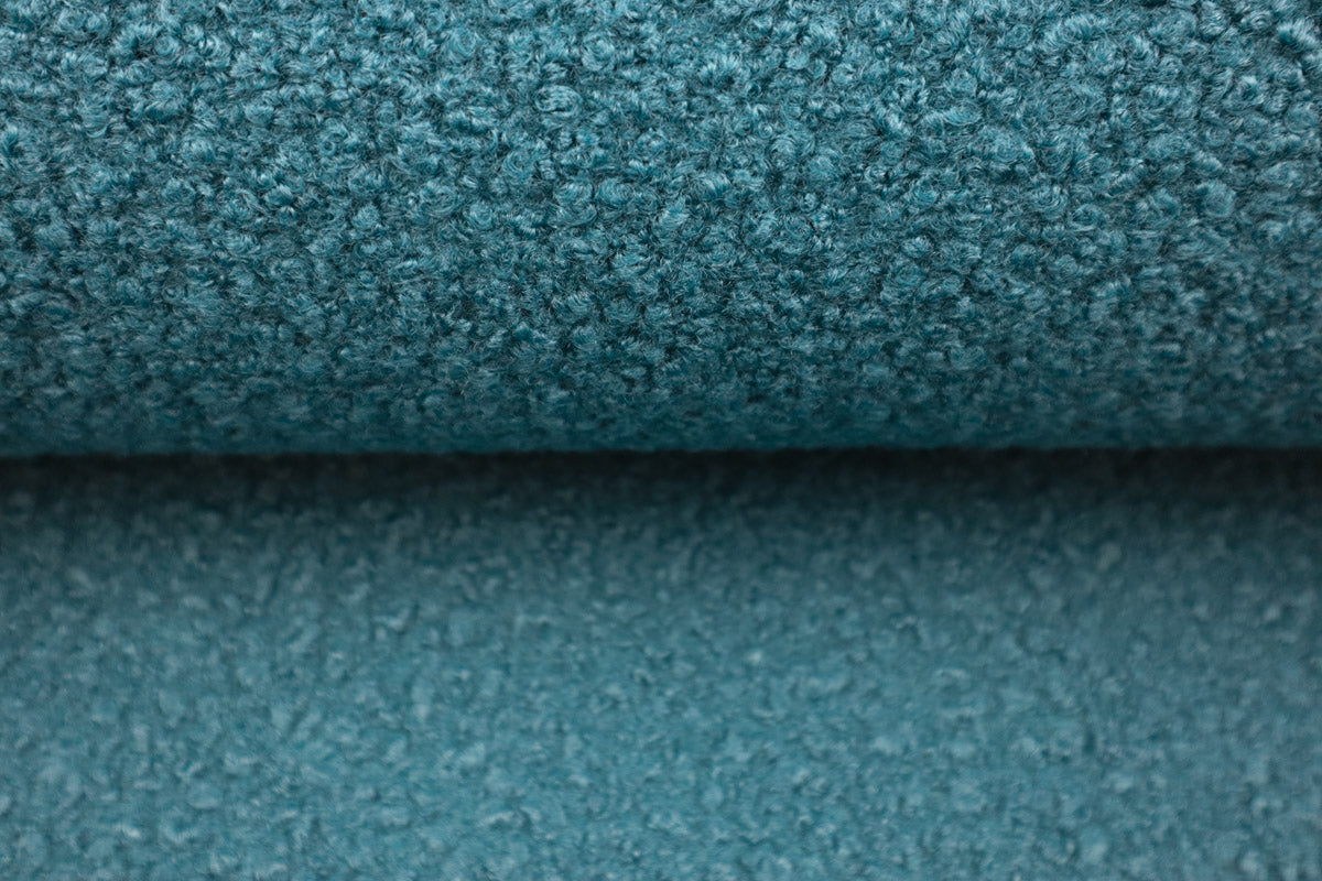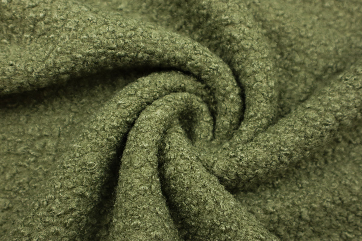 Boucle hat eine schlingenartige Oberfläche, ist wenig empfindlich und knittert kaum. Der Stoff ist besonders leicht zu verarbeiten, da die Schnittstellen nicht fransen.