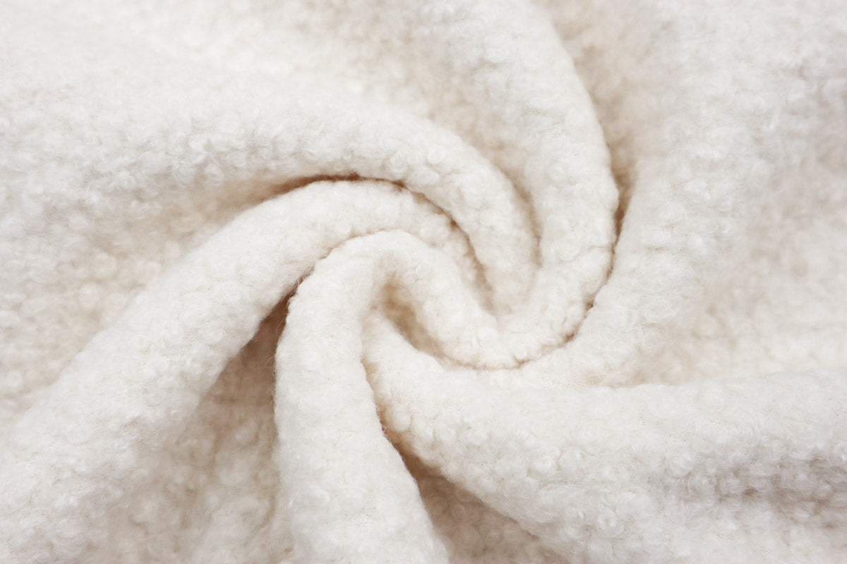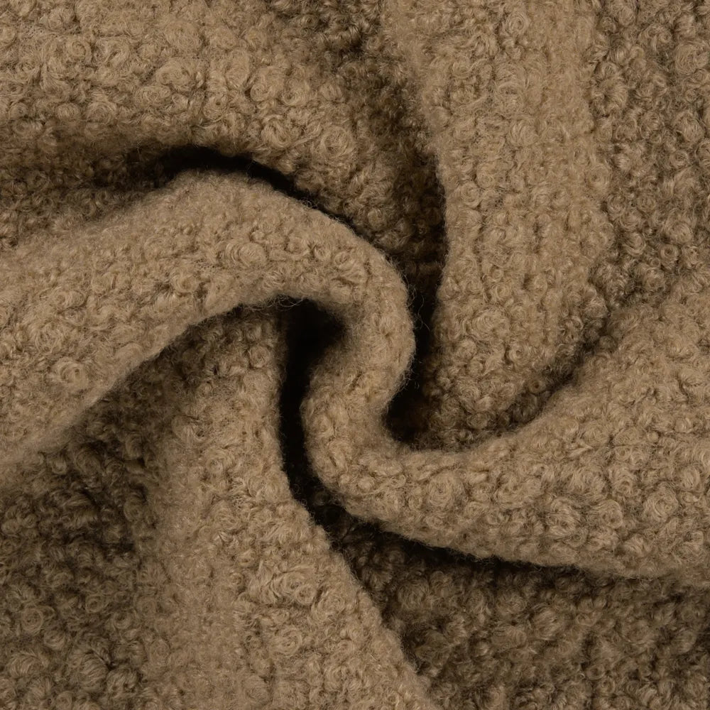 Kuscheliger, griffiger Bouclé-Stoff. Die Qualität ist nicht zu schwer und deshalb super trageangenehm.