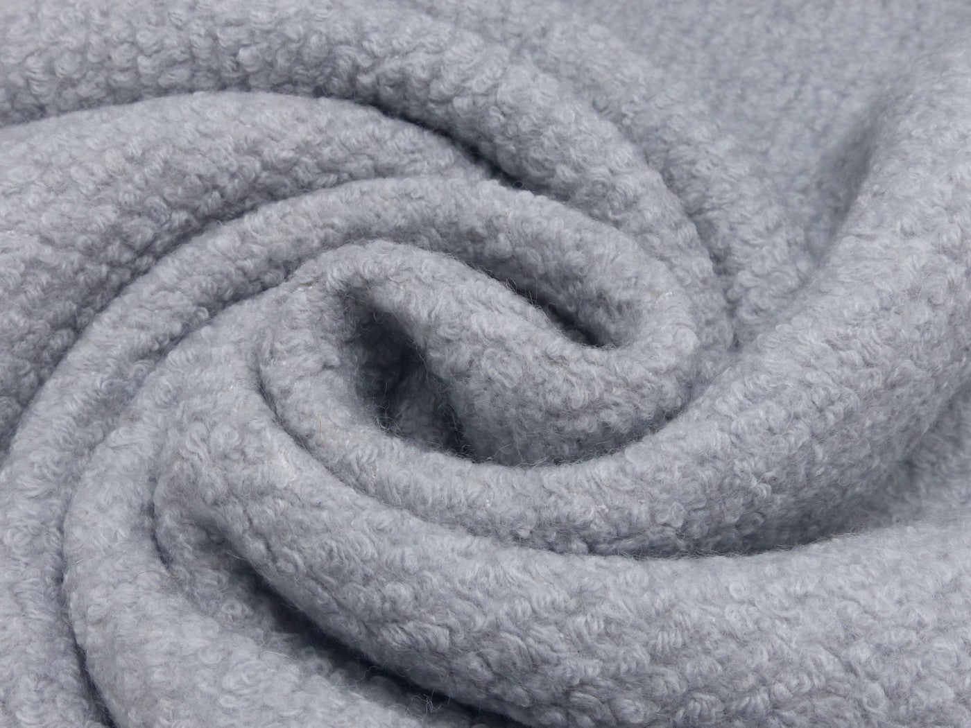 Kuscheliger, griffiger Bouclé-Stoff. Die Qualität ist nicht zu schwer und deshalb super trageangenehm.