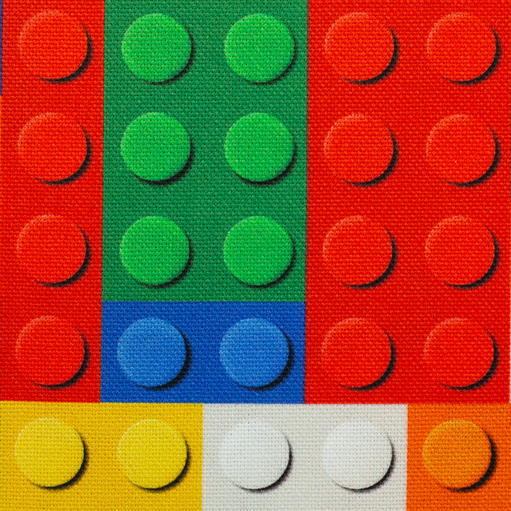 Dieser Stoff zeigt das kultige Baustein-Design in kräftigen Farben – bei Bob als robuster Canvas mit etwas größeren Bausteinen.