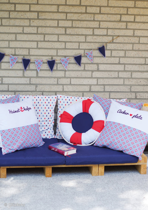 Für Taschen, Stranddecken, Tischdeko, Sitzkissen, Liegenauflagen, Bekleidung und vieles mehr eignet sich der robuste Canvas Heiner mit maritimen Motiven in Rot, Dunkelblau und Weiß- Es kann nach Herzenslust kombiniert werden, die Motive passen wunderschön zusammen!