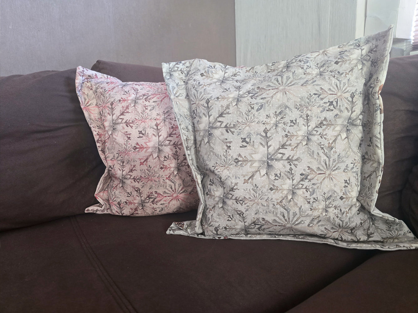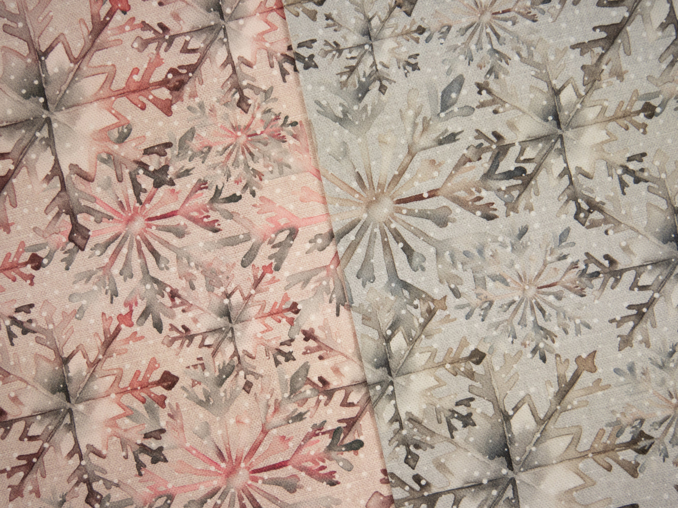 Zarte Schneeflocken- und Sternenmotive, die in 2 Farbstellungen (Beige/Rose und Grau meliert) erhältlich sind. Perfekt für Kissen, Tischläufer oder auch Winter-Accessoires.
