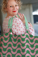 So harmonisch kombiniert – es gibt die Wellen in Blush auf Grün, in Royalblau auf Aqua und in der mega Kombination aus Pinken Wellen auf rotem Grund. Das Wellenmuster ist schlicht und doch besonders und wirkt durch die tollen Farben und Kontraste.