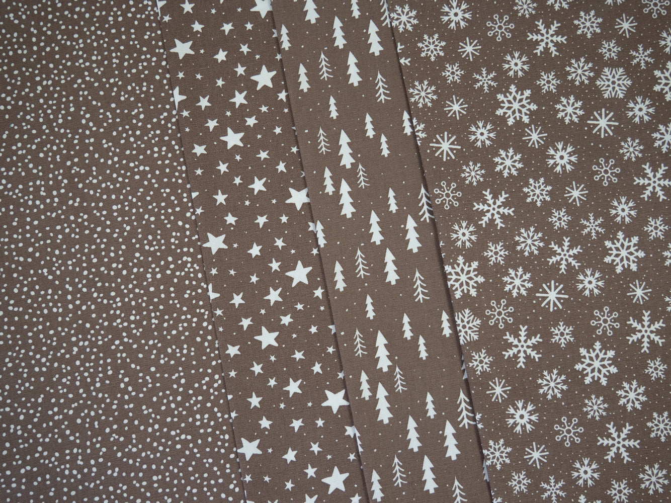 Es gibt unregelmäßige Dots / Pünktchen, die auch Schneegestöber darstellen können, Sterne, Weihnachtsbäume und Schneekristalle in Taupe und in Rot jeweils mit weißen Motiven. Besonders schöne Farben und zeitlose, trendige Designs, damit man lange Freude daran hat!