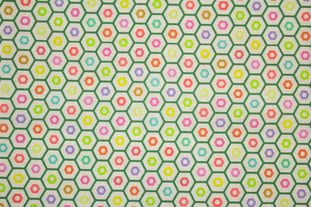 Farbenfroher Dekostoff mit geometrischem Wabenmuster.
