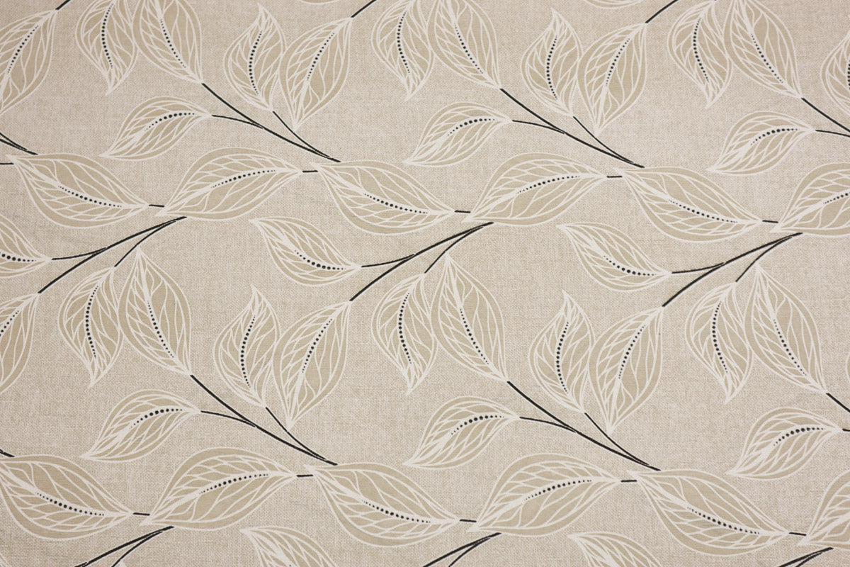 Super schöner, schlichter Dekostoff mit beigen Blättern auf beigem Grund.